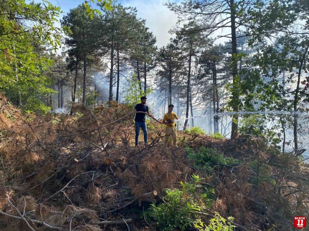 Bilecik’in Gölpazarı ilçesinde dün Söğütçük ile Aktaş köyleri arasında henüz bilinmeyen bir nedenle çam ağaçlarından oluşan ormanlık alanda yangın başlamıştı.