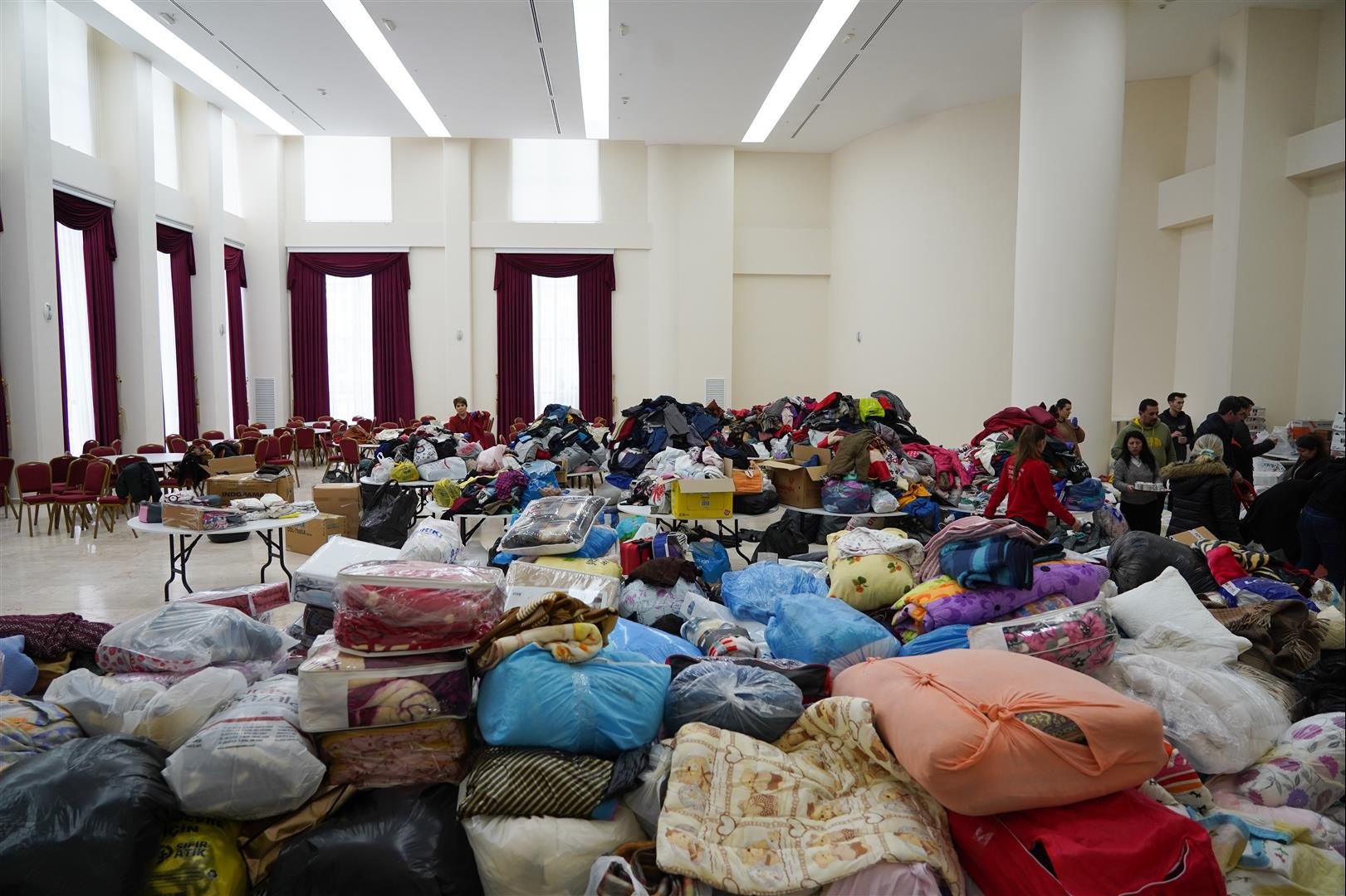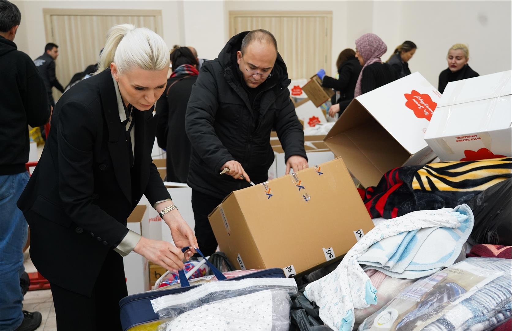 Belediye Başkan V. Melek Mızrak Subaşı, Şeyh Edebali Kültür ve Kongre Merkezinde yürütülen yardım toplama çalışmalarını yerinde inceledi.