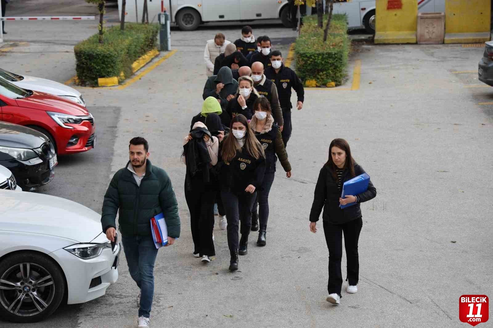 Gözaltına alınan ve Eskişehir İl Emniyet Müdürlüğü’nde işlemleri tamamlanan şüpheliler, ‘Nitelikli dolandırıcılık’ suçu çerçevesinde adliyeye sevk edildi. – İHA