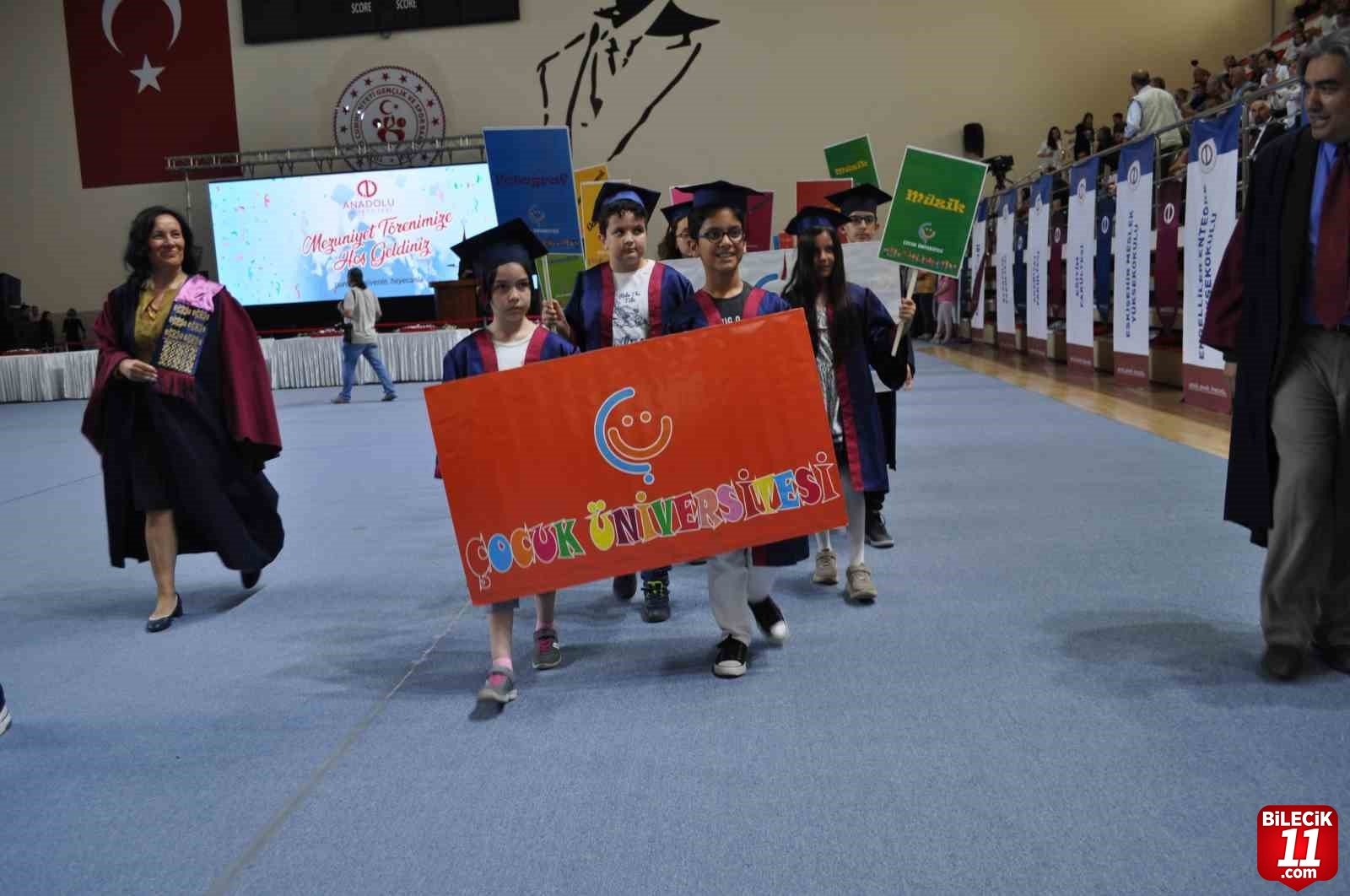 Anadolu Üniversitesi mezuniyet töreninin 2’nci oturumu Şehit Anıl Gül Spor Salonu’nda bugün gerçekleştirildi. Açık Öğretim Fakültesi’nin çeşitli bölümlerinden ve örgün öğretimin iktisat ile işletme bölümlerinden mezun olan öğrenciler kep attı. Ayrıca Çocuk Üniversitesi’nin minik öğrencilerinin katıldığı mezuniyet töreni renkli görüntülere sahne oldu.