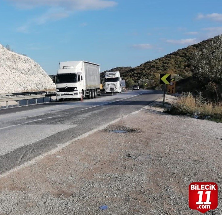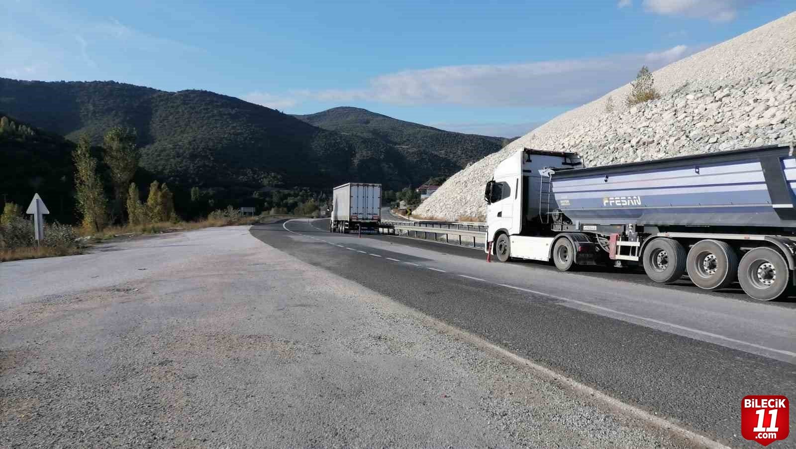 İlçe girişinden Bilecik istikametine doğru 3 kilometresi tek şeride düşen yolda, günün bazı saatlerinde araç kuyrukları oluştuğunu söyleyen sürücüler, yol çalışmasının kısa sürede bitirilmesini istedi. – İHA