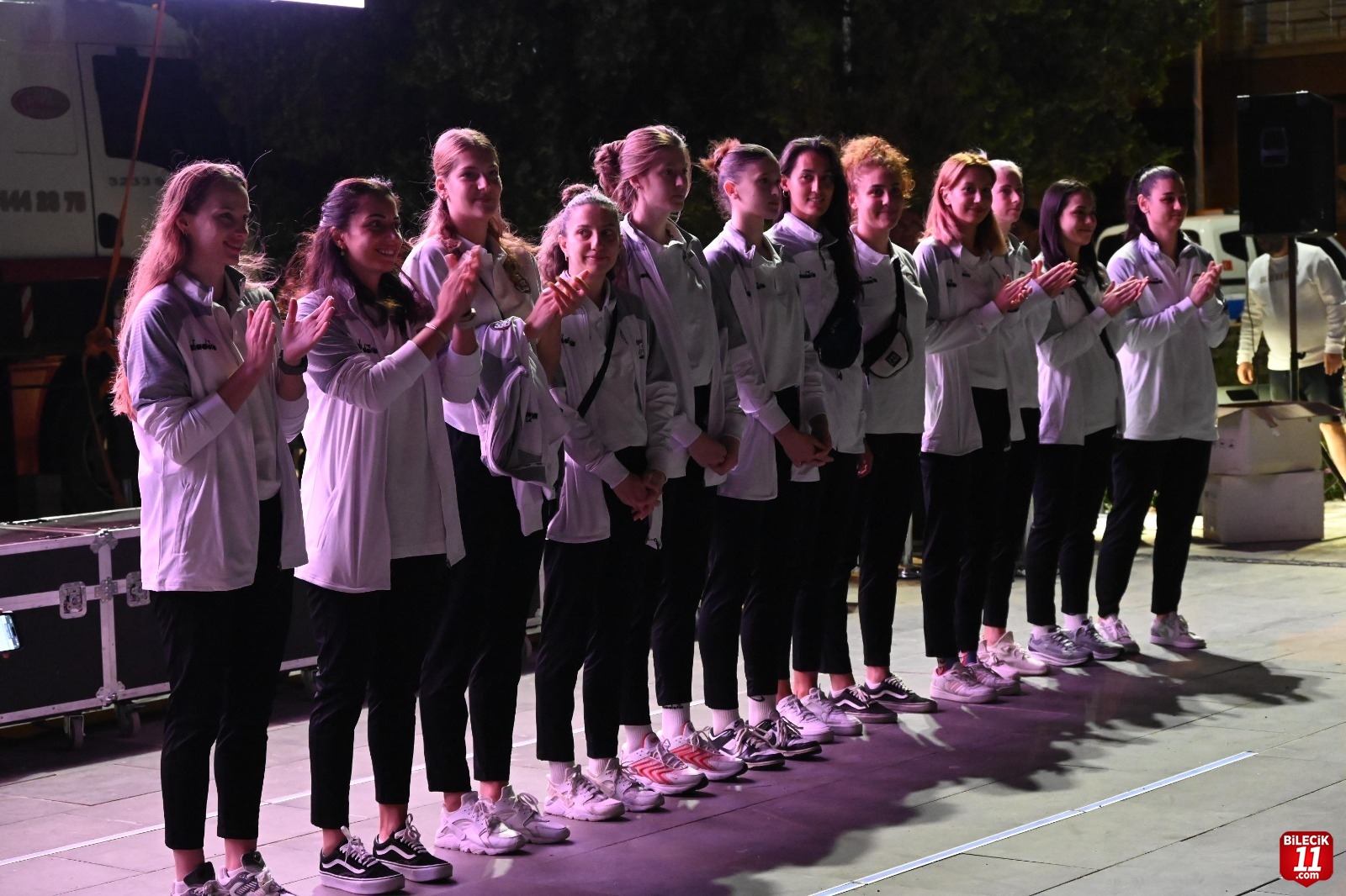 Belediye tarafından kurulan dev ekranda yüzlerce spor sever heyecanla karşılaşmayı izlerken, Bozüyük Belediye Kadın Voleybol takımı oyuncuları da heyecandan yerlerine oturamadılar.
