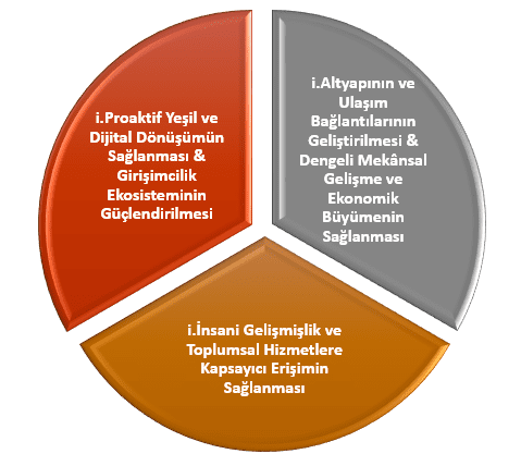 Altyapının ve Ulaşım Bağlantılarının Geliştirilmesi & Dengeli Mekânsal Gelişme ve Ekonomik Büyümenin Sağlanması İnsani Gelişmişlik ve Toplumsal Hizmetlere Kapsayıcı Erişimin Sağlanması.”