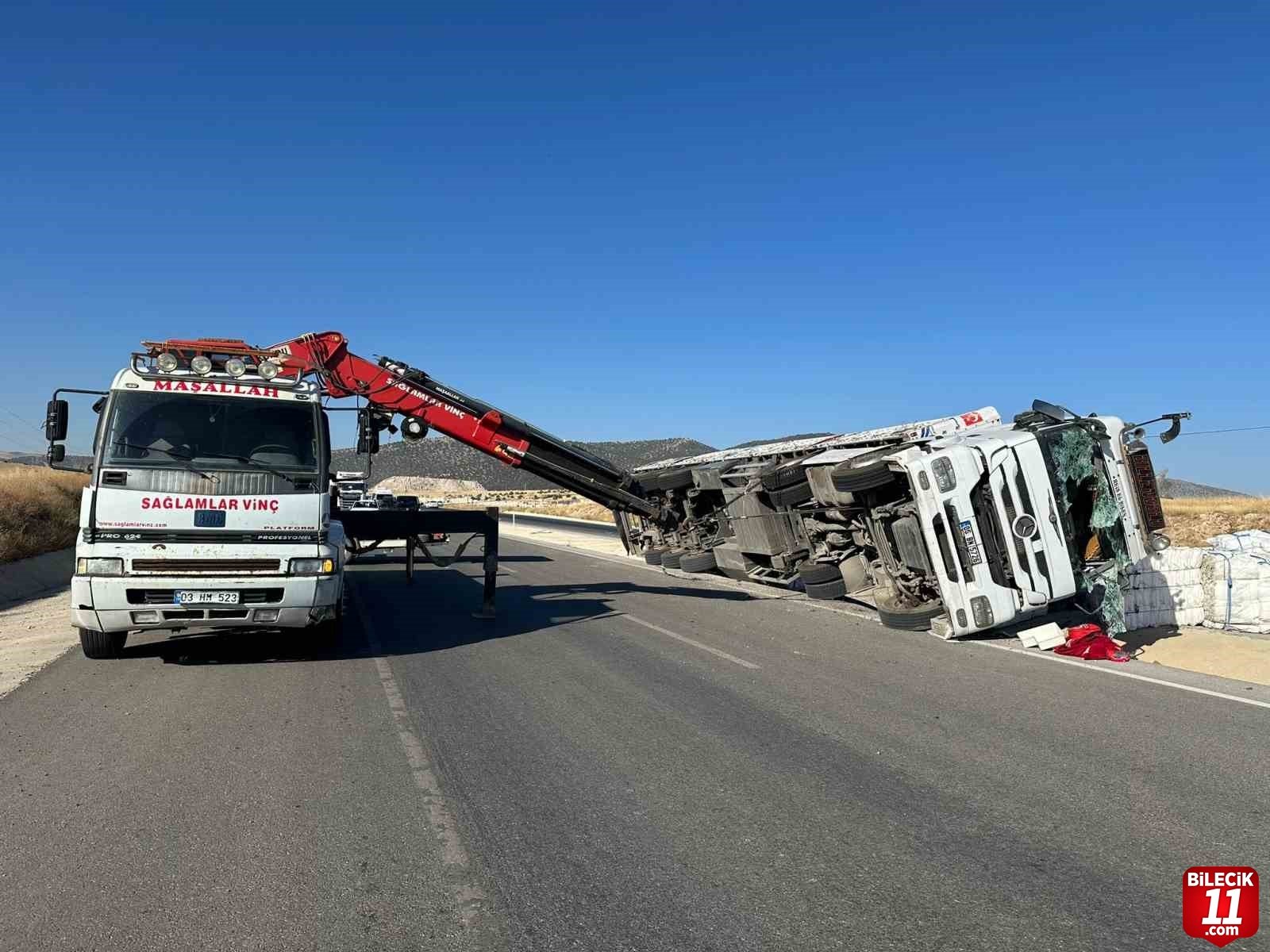 Afyonkarahisar’da boş çuval taşıyan tırın devrilmesi sonucu yaşanan trafik kazasında ikisi çocuk 3 kişi yaralandı.