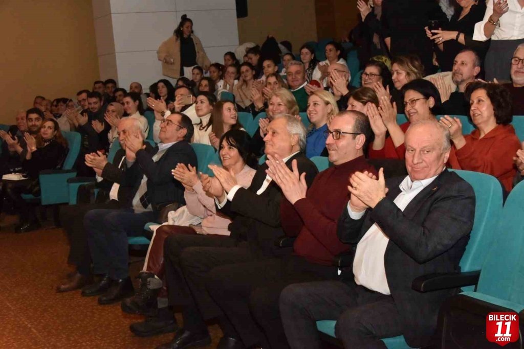 Başkan Bakkalcıoğlu daha sonra oyunun hazırlanmasında görev alan herkesi tebrik ederek çiçek takdim etti.