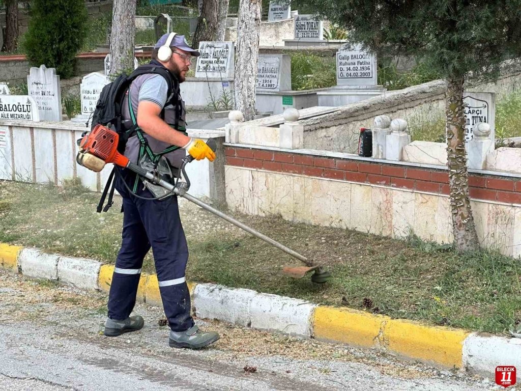 Bozüyük ilçe mezarlığında düzenli aralıklarla temizlik çalışması yapan Bozüyük Belediyesi ekipleri Kurban Bayramı öncesinde mezarlık genelinde genel bakım ve temizlik çalışmalarına başladı. Kış aylarının ardından havaların ısınması ile birlikte çalışmalara hız veren ekipler çalışmalar kapsamında sırt tırpanı ile ot temizliği yaparken mezarlık içerisindeki yollar da yol süpürme aracı ile süpürülerek temizleniyor. Ayrıca mezarlığın dik bölgelerinde vatandaşların ulaşımını kolaylaştırmak amacıyla yapılan merdiven yapım çalışması devam ediyor. Yapılan çalışmalar ile mezarlık içerisinin temiz ve bakımlı olmasını sağlıyor. – İHA