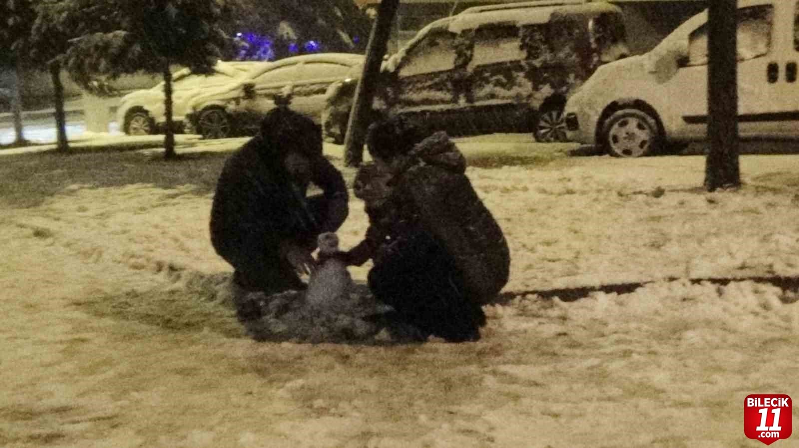 Bilecik’in Bozüyük ilçesinde karın yağışını fırsat bilen çocuklar aileleriyle birlikte parklara çıkarak kartopu oynadılar, kardan adam yaptı.