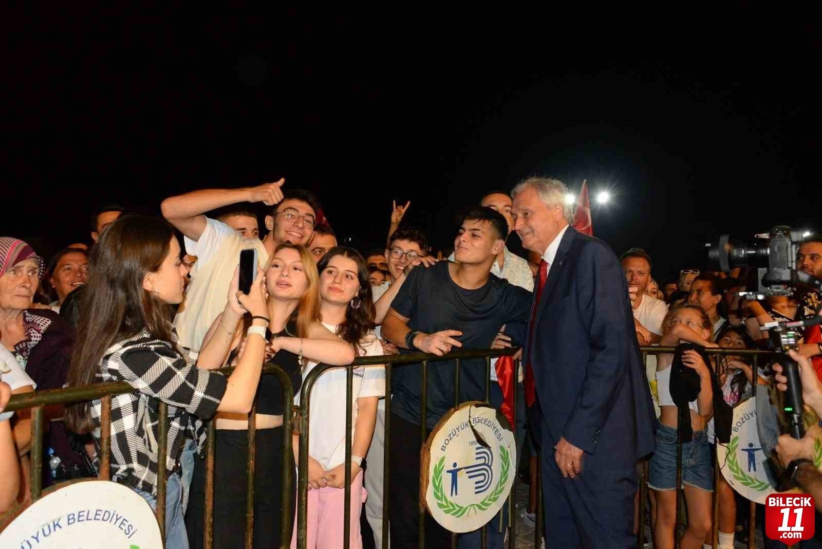 Programın devamında eşiyle birlikte sahneye gelen Bozüyük Belediye Başkanı Mehmet Talat Bakkalcıoğlu “Sevgili Bozüyüklüler, sevgili Gençler Bozüyük Funda Arar’la ‘Başka Güzel değil mi?’ Biz Funda Hanım’ın ne kadar Atatürkçü olduğunu da biliyoruz. Böyle zaferler kazandırıp bize ülkemizi emanet eden büyük Atatürk’ün zaferini kutladığımız bu günde Funda Hanım ile beraber olalım istedik. Burada yer alan on binler sizin her şarkınızı kelime kelime tekrarladılar. Çok değerlisiniz bizim için” diyerek Bozüyük seramiğinden yapılmış Atatürk plaketi ve çiçek takdim etti. Daha sonra Funda Arar, seslendirdiği birbirinden güzel şarkılarla Bozüyüklüleri güçlü sesi ve yorumuyla büyüledi. Her yaştan müzikseverin katıldığı konserde birbirinden güzel şarkılarını seslendiren Arar’a on binlerce kişi hep bir ağızdan eşlik etti. Yaklaşık 2 saat sahne performansı sergileyen Funda Arar Bozüyüklülere unutulmaz bir gece yaşattı.