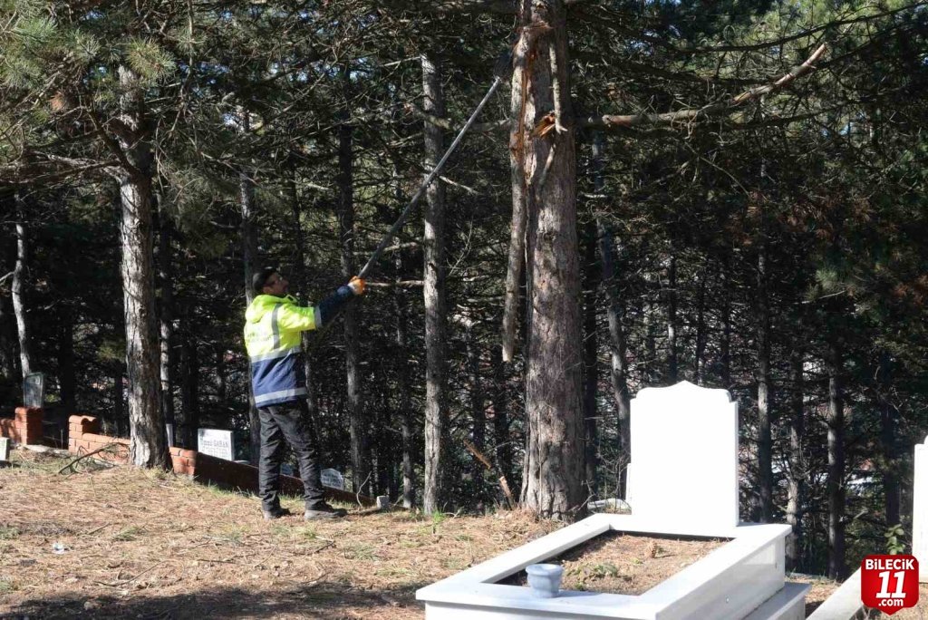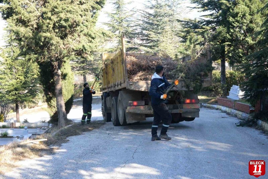 Bozüyük Belediyesi Fen İşleri Müdürlüğü ekipleri tarafından mezarlık içerisinde başlatılan ağaç budama çalışmaları sürüyor. Ekipler bir taraftan ağaçları budarken bir taraftan da mezarlık içerisinde çıkan yabani bitkileri keserek ağaç dalları ile birlikte temizliğini yapıyor. Ekipler ayrıca Çarşı Mahalle Tepebaşı Sokak’ta bordür ve taş döşeme çalışmalarını gerçekleştirirken aynı zamanda Yenidoğan Mahallesi yeni Toki bölgesinde de kaldırım yapımı ve bordür çalışmalarını sürdürüyor. – İHA