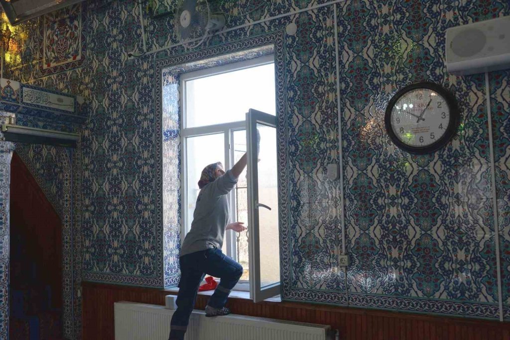 Temizlik İşleri Müdürlüğü’ne bağlı ekipler tarafından Ramazan ayında vatandaşların ibadet yeri olan camilerin daha temiz ve sağlıklı olması, vatandaşların temiz bir alanda ibadet edebilmelerini sağlamak amacıyla cami ve mescitlerde belirli bir program dahilinde temizlik çalışmaları gerçekleştiriliyor. Temizlik ekiplerince cami ve mescitlerde kapsamlı olarak yürütülen temizlik çalışmalarında cami içindeki halılar süpürülüyor, kapı ve camlar itina ile siliniyor, ayakkabılıklar temizleniyor. – İHA