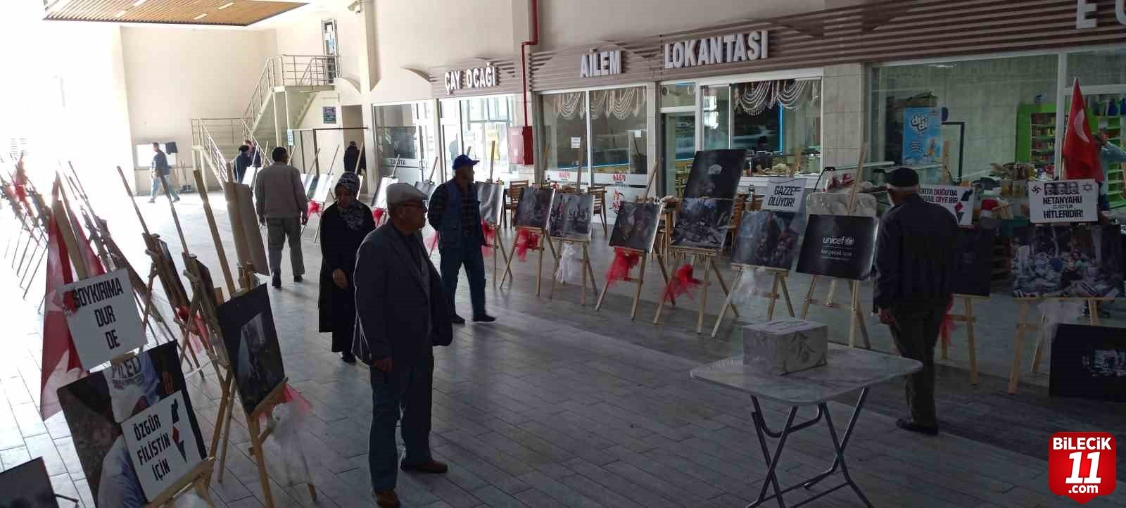 Bilecik’in Bozüyük ilçesinde, İsrail’in Gazze’ye yönelik yaptığı saldırılara tepki göstermek amacıyla “Filistin farkındalık” konulu resim sergisi açıldı.