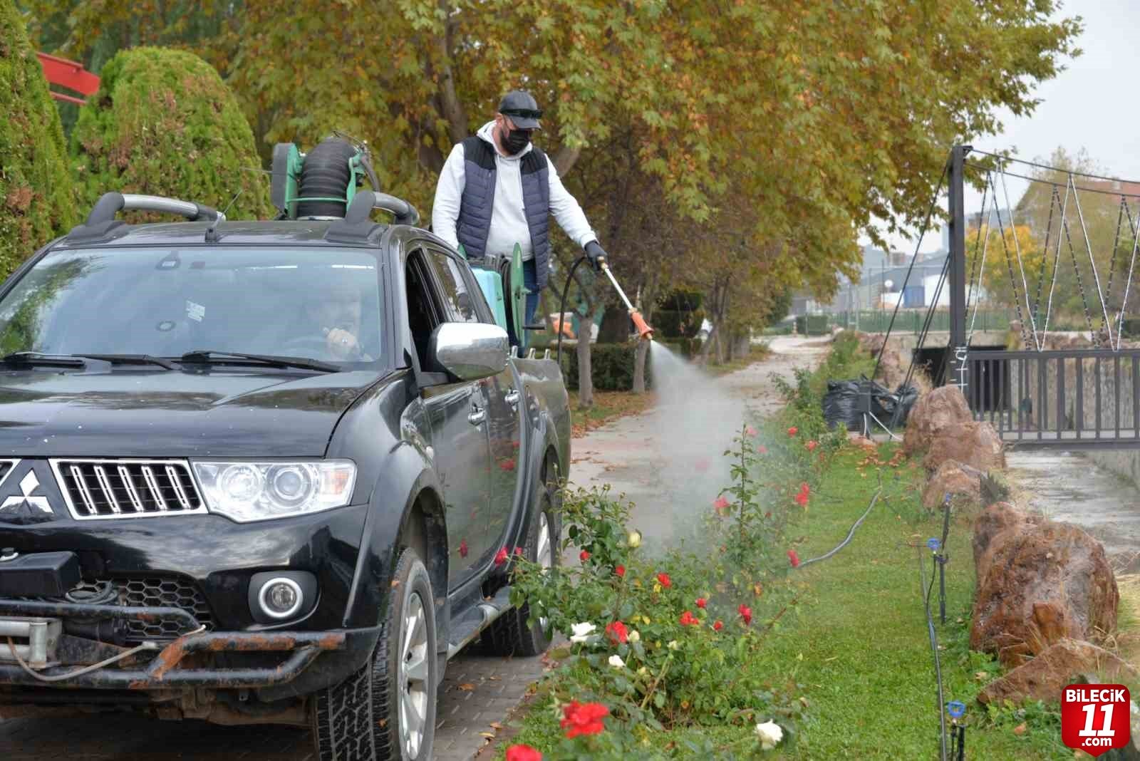 Bozüyük’te yeşil alanlarda rengârenk açan ve ilçeye güzellik katan güllerin sağlıklı kalmaları amacıyla yapılan ilaçlama çalışmaları devam ediyor.