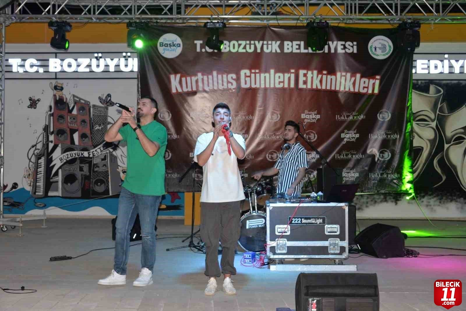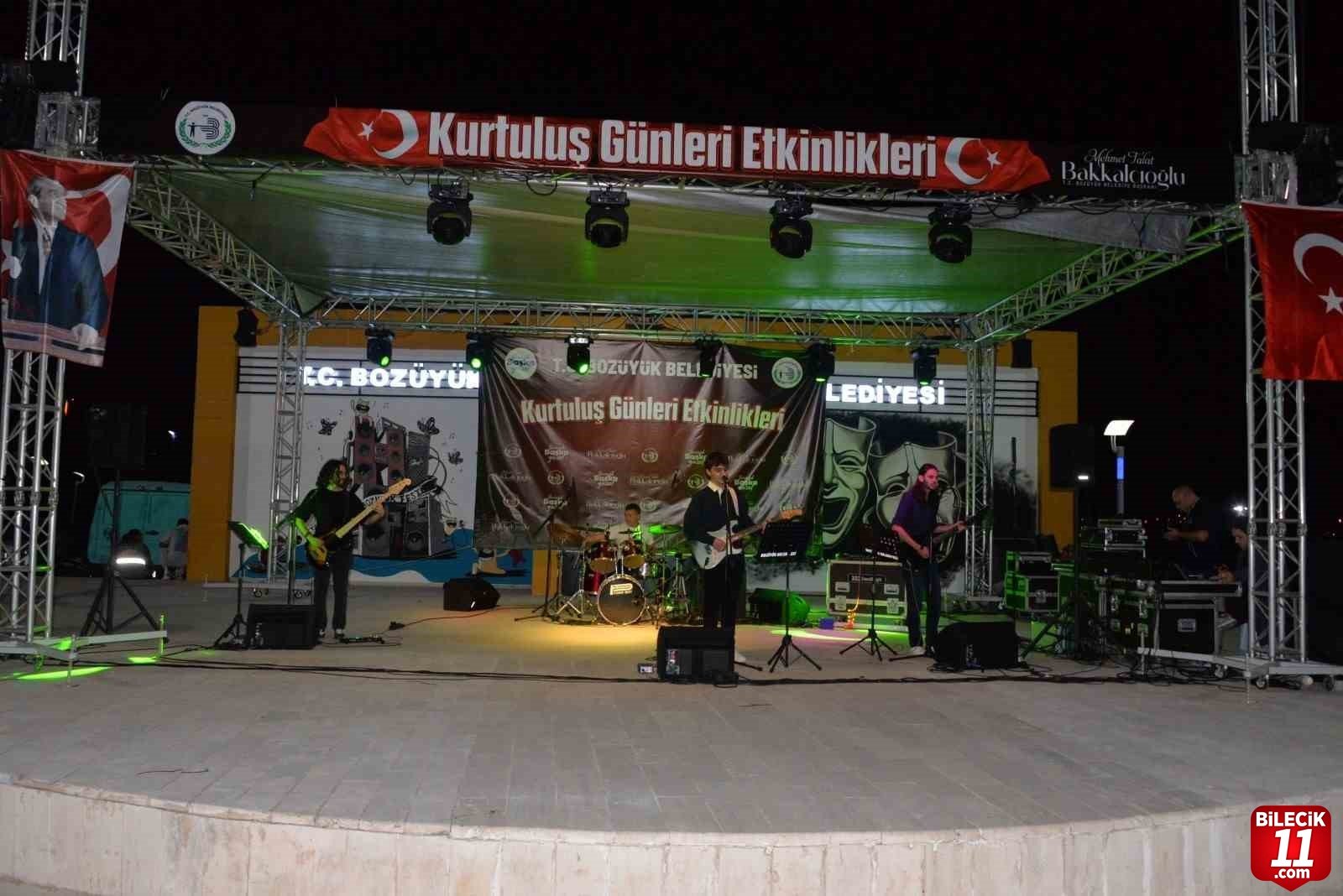 Bilecik’in Bozüyük Belediyesi’nin kurtuluş günleri etkinlikleri konser programında sahne alan genç yetenekler Grup Denek, X-RAY, Emre Güney ve DJ Alper Caner Yılmazer’in performansları yoğun ilgi gördü.
