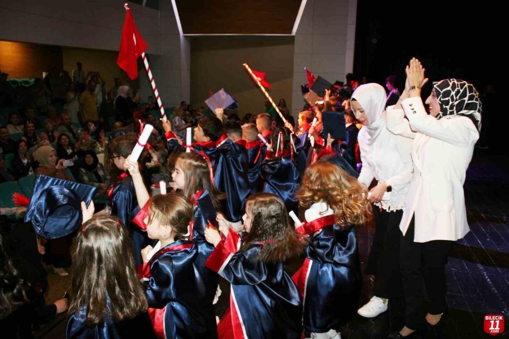 Bozüyük Metristepe Kültür Merkezinde gerçekleşen programda, öğrenciler birbirinden güzel dans gösterileri yaptı. Gösteriyi izlemeye gelen veliler ise çocuklarının mezuniyet heyecanına ortak oldular. Öğrenciler, öğretmenlerinin elinden diplomalarını alarak ilk diploma sevincini yaşadılar. Keplerini havaya fırlatan öğrenciler neşe içerisinde unutulmaz bir gün yaşadılar. – İHA