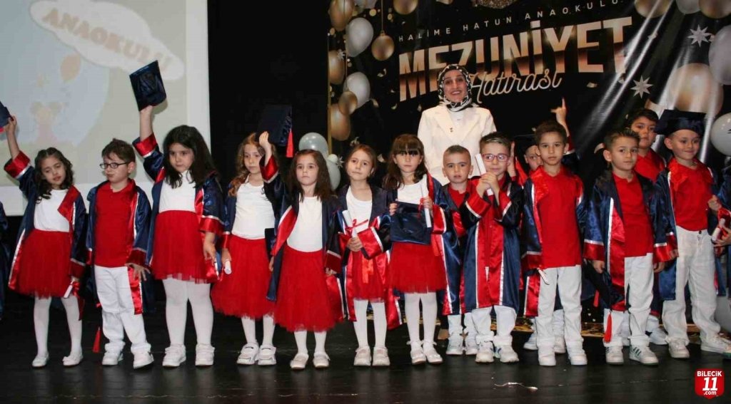 Bozüyük Halime Hatun Anaokulu tarafından hazırlanan yıl sonu mezuniyet töreninde, minikler cübbe ve kep giyerek ilk mezuniyet sevincini yaşadılar.