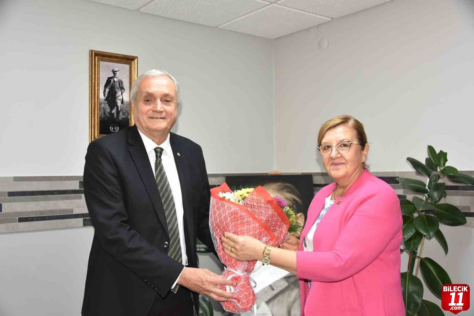 Misafirlerine nazik ziyaretleri nedeni ile teşekkür eden Başkan Bakkalcıoğlu ziyaretin anısına çiçek takdiminde bulundu.