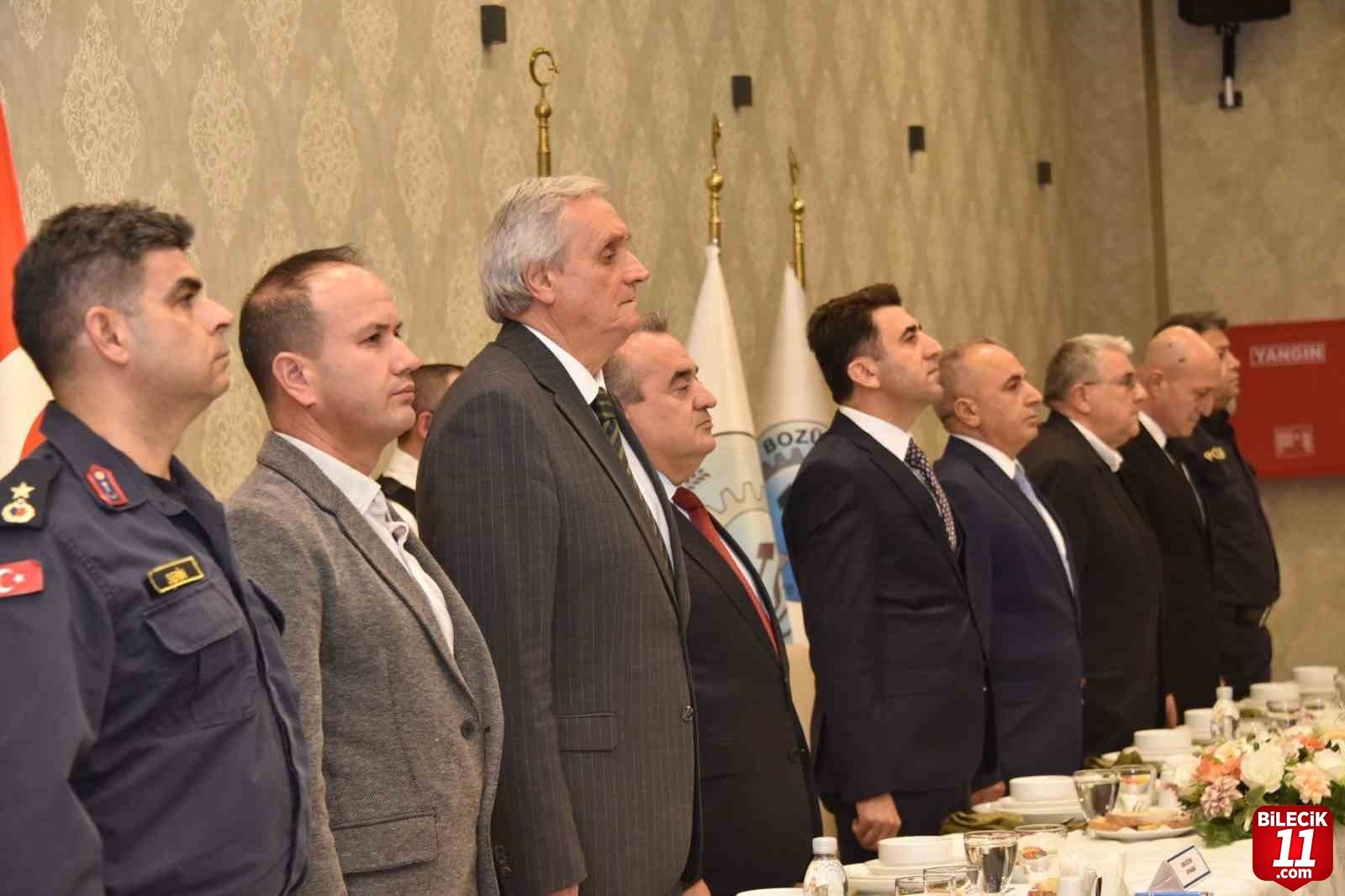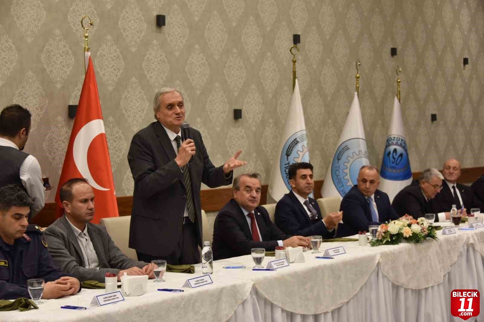 Bozüyük 4 Eylül Delux Toplantı Salonu’nda düzenlenen toplantıya Bilecik Valisi Şefik Aygöl, Kaymakam Adem Öztürk, Garnizon Komutanı Mühimmat Yüzbaşı Caner Yılmaz, Belediye Başkanı Mehmet Talat Bakkalcıoğlu, İlçe Jandarma Komutanı Binbaşı Alper Soner Serin, Eski Devlet Bakanı ve Milletvekili Bahattin Şeker, TSO Başkanı Veli Çelik, sanayiciler, iş insanları ve meslek odası temsilcileri katıldı.