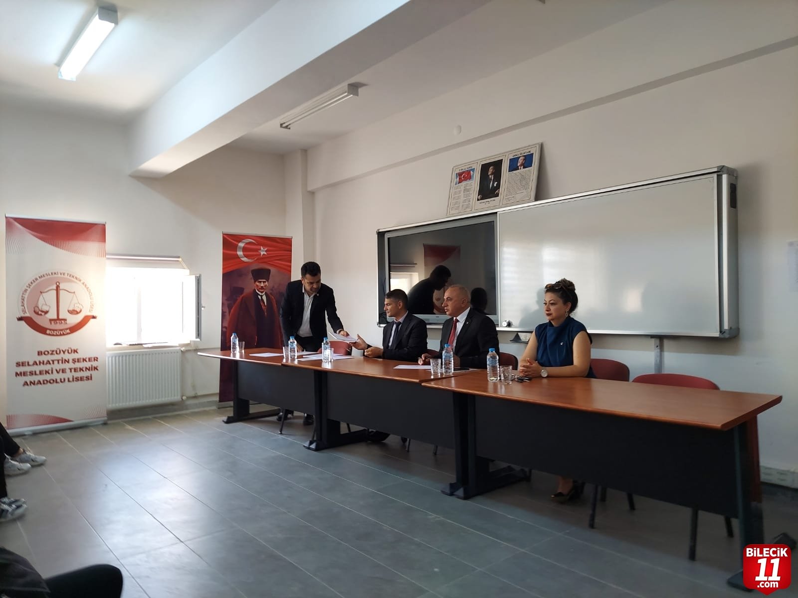 “Selahattin Şeker Mesleki ve Anadolu Lisesi ev sahipliğinde Ahilik Haftası Etkinlik Programı gerçekleşti. Bozüyük Ticaret ve Sanayi Odası Başkanı Veli Çelik ve Yönetim Kurulu Üyesi Berna Akdemir Çelik’in katılım sağladığı programda öğrencilere Ahilik Yemin Belgeleri verildi. Bozüyük Ticaret ve Sanayi Odası Başkanı Veli Çelik öğrencilere; Ahilikte esnafların ticaret ahlakı konusunda bir takım düsturlar çerçevesinde hareket etmesi gerekir. Bu örgüt zamanın gözde düşünce adamı ve kanaat önderi durumunda olan Hacı Bektaşi Veli Hazretlerinin tavsiyeleri doğrultusunda kurulmuş, organizasyonun felsefi yapısı ahlaki ve insani prensiplerle oluşturulmuştur. Kurucusu Ahi Evrandır. Daha önce Araplar tarafından kurulan Fütüvvet Teşkilatı örnek alınarak yapılandığı sanılmaktadır. Kuruluş amacı ticarete ahlaki ilkeler kazandırmak, esnaf dayanışmasını sağlamak, halkımız arasında ticaret kültürünü yaymak ve geliştirmek, halkın ticaret ve sanat konusunda aldatılmadan en iyi şekilde hizmet almasını sağlamaktır. Dedi. Program öğrencilerin soruları sonrasında sona erdi.” ifadelerine yer verdi.