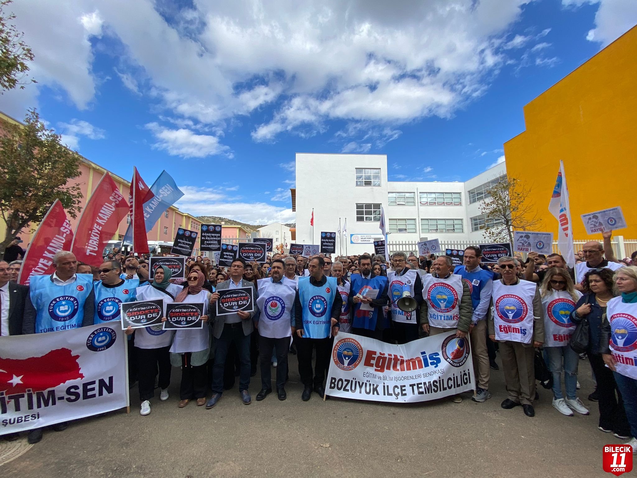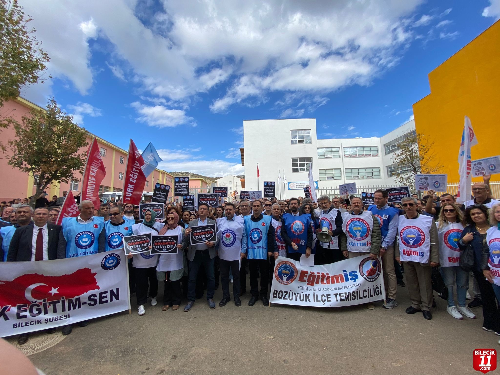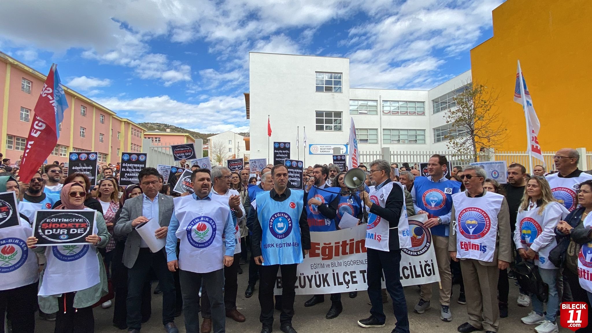 Bilecik’in Bozüyük İlçesinde öğretmenin veli tarafından darp edilmesine yönelik sendikalar alanlara inerek yaşanan olayı protesto etti.