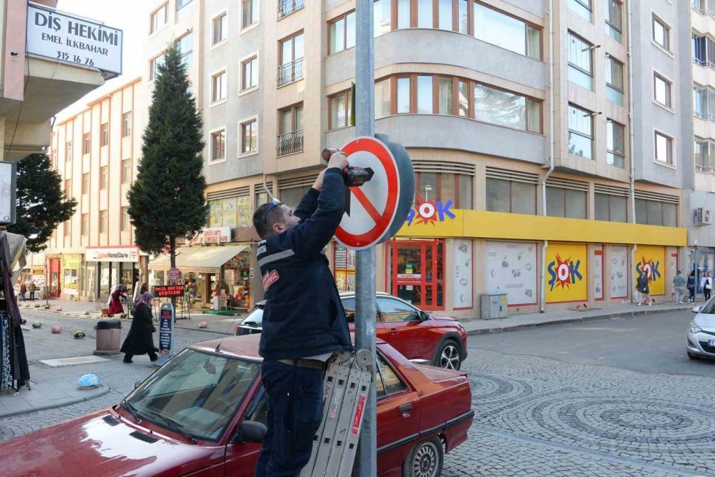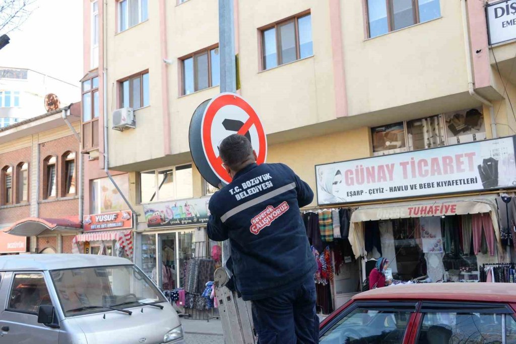 Bozüyük’te ilçe genelinde ihtiyaç görülen noktalardaki eskiyen ve yıpranan yön ve trafik levhaları Bozüyük Belediyesi ekiplerince sökülerek, yenileriyle değiştiriliyor.