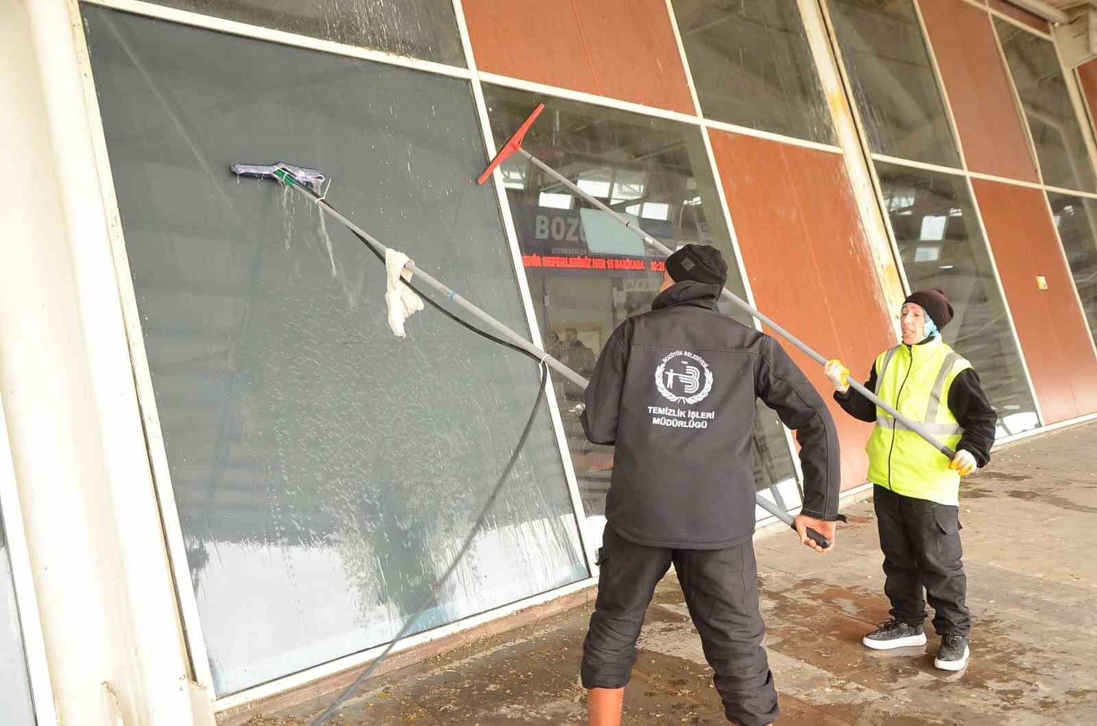 Bozüyük Şehirler Arası Otobüs Terminalinin iç bölümlerinde günlük yapılan temizlik çalışmalarına ilave olarak dış cephede düzenli aralıklarla merdivenli İtfaiye aracı yardımıyla, vatandaşların demiryolu üzerinden güvenli ulaşımını sağlayan demiryolu üst geçidi de periyodik aralıklarla yıkanarak temizleniyor. Ayrıca vatandaşların yoğun olarak kullandığı kapalı ve açık durakların iç zeminleri yıkanarak daha hijyen bir hale getirilirken durakların camları da iç ve dış cepheleri olmak üzere temizlenerek vatandaşların kullanımına sunuluyor.