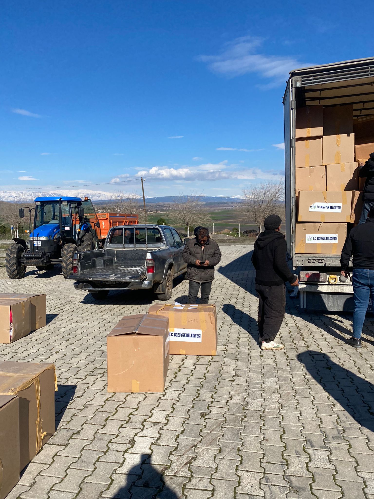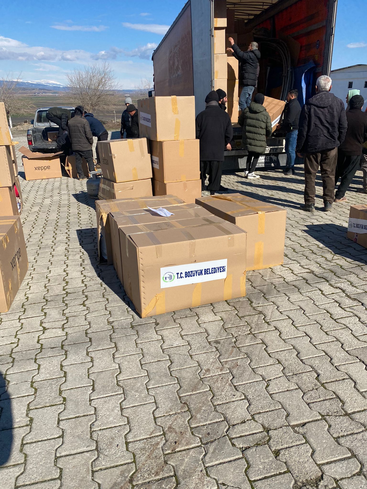 Bozüyük Belediyesi tarafından başlatılan Afet Yardım Kampanyası kapsamında toplanan kullanılmamış çadır, battaniye, ısıtıcı, kışlık kıyafet, bebek bezi ve maması, ped, kuru gıda, yiyecek malzemeleri ve su gibi yardımlar Bozüyük Belediyesi Metristepe Kültür Merkezi’nde toplanarak tasnif edilmiş ve 2 tır ile deprem bölgesine gönderilmişti. Kahramanmaraş Pazarcık’a ulaşan tırlardaki malzemelerde yetkililere teslim edilerek depremzedelere ulaştırıldı.