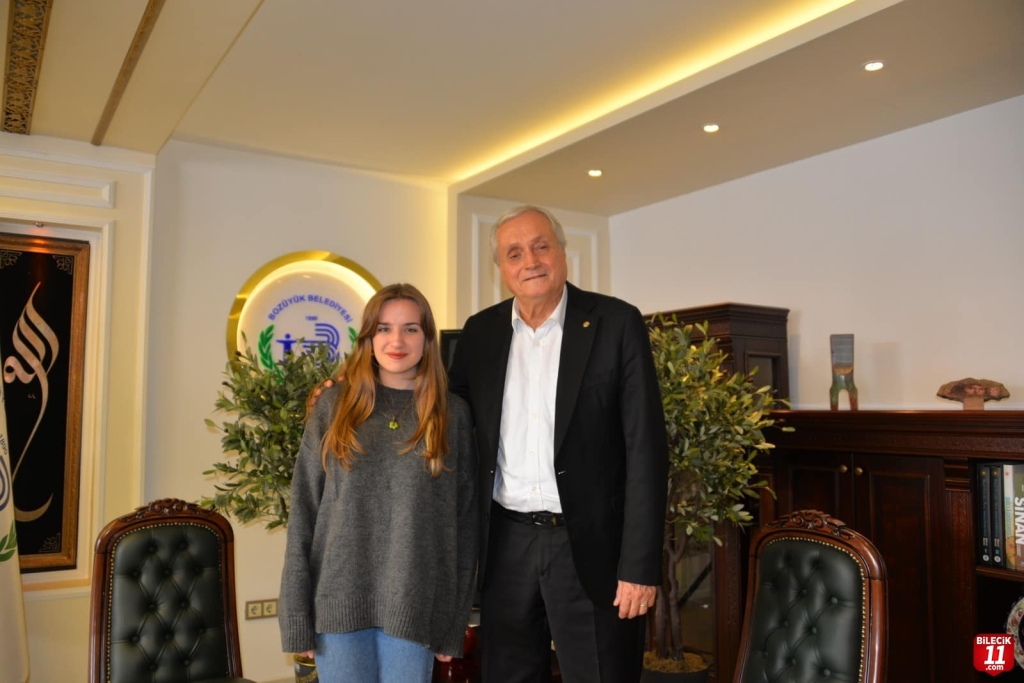 “Belediyemiz 2. Dönem Gençlik Tiyatrosu öğrencilerimizden, Ankara Hacettepe Üniversitesi Devlet Konservatuvarı Tiyatro Bölümü’nü yetenek sınavıyla kazanarak bizleri gururlandıran Zeynep Aksu ile kıymetli annesini belediyemizde ağırladım. Bozüyük Belediye Tiyatrosu’nu kurarken en önemli hedeflerimizden biri olan, Bozüyüklü çocuklarımızın konservatuvar yolunda başarıya ulaşması hayalimizi gerçekleştiren Zeynep kızımızı tebrik ediyor, başarılarının artarak devam etmesini diliyorum.”