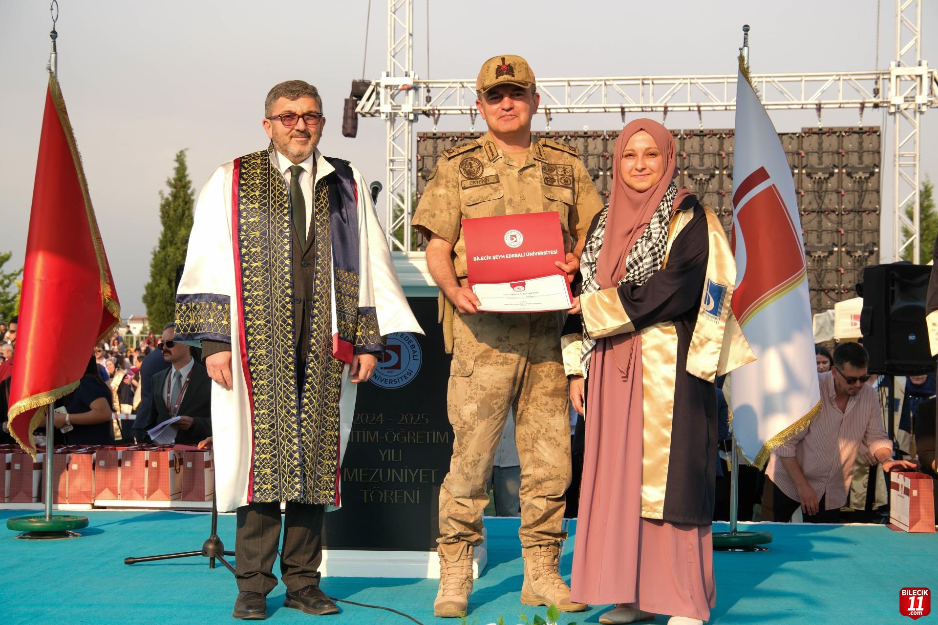 Bilecik Şeyh Edebali Üniversitesi 2024-2025 Eğitim-Öğretim Yılı Mezuniyet Töreni, 27 Haziran Cuma günü Üniversite Stadyumunda büyük bir coşkuyla gerçekleştirildi. Törende binlerce öğrenci mezuniyet sevinci yaşarken, aileleri de bu anlamlı günde sevinçlerine ortak oldu.
