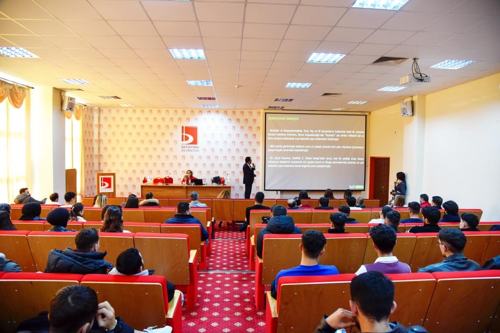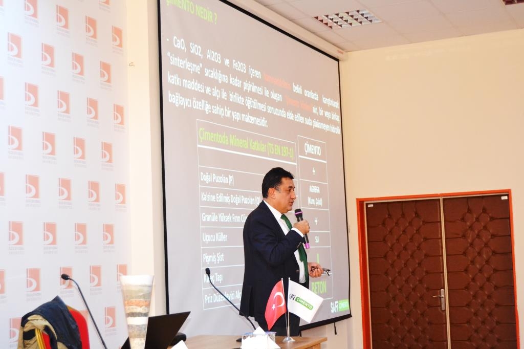 İktisadi ve İdari Bilimler Fakültesi Konferans Salonunda gerçekleştirilen etkinlikte; çimentonun tarihçesi, klinker ve çimento kavramları, fosil katı yakıt, alternatif yakıt kullanımı, elektrik enerjisi kullanımı gibi enerji alanları, çimento sektöründe iş hayatı, dünya ve Türkiye çimento sektörü, çimento üretimi, kalite kontrol süreçleri, yasal zorunluluklar ve standartlar gibi konular kapsamında bilgiler paylaşıldı.