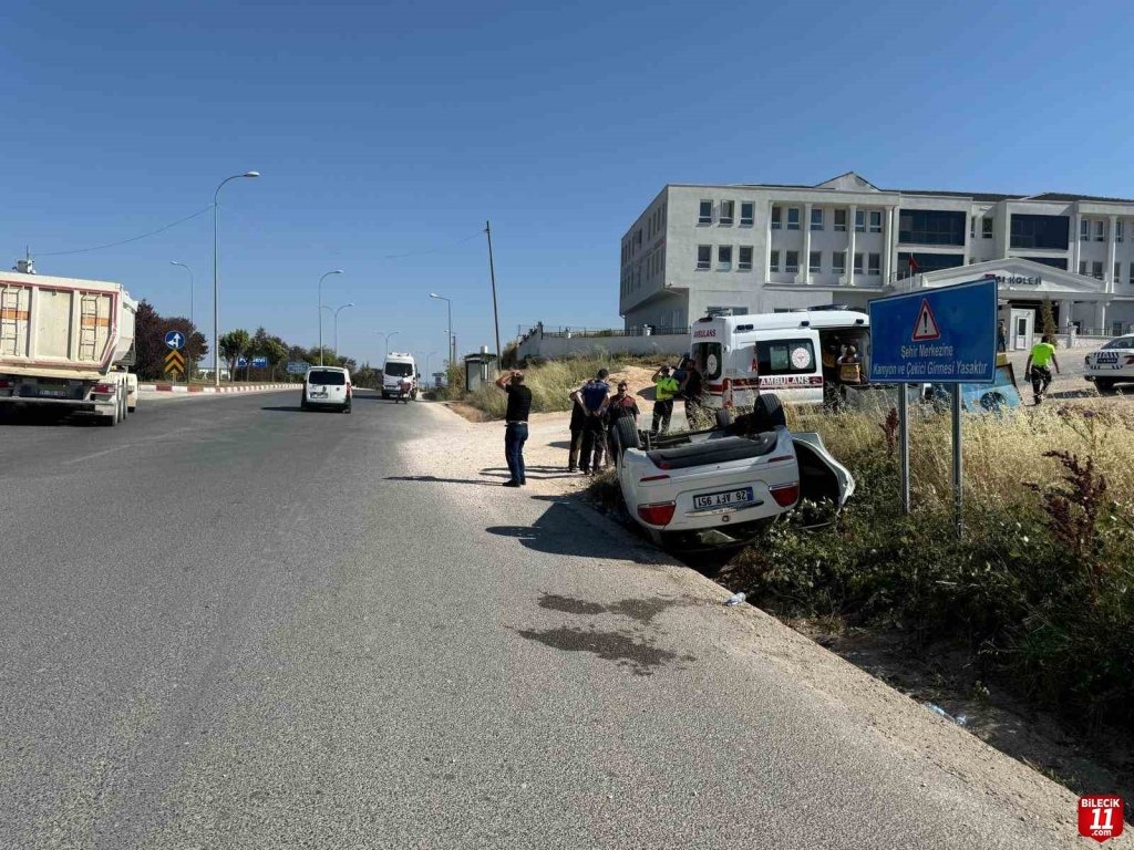 Bilecik’te otomobilin takla atması sonucu meydana gelen trafik kazasında araç içinde bulunan 3 kişi yara almadan kurtuldu.