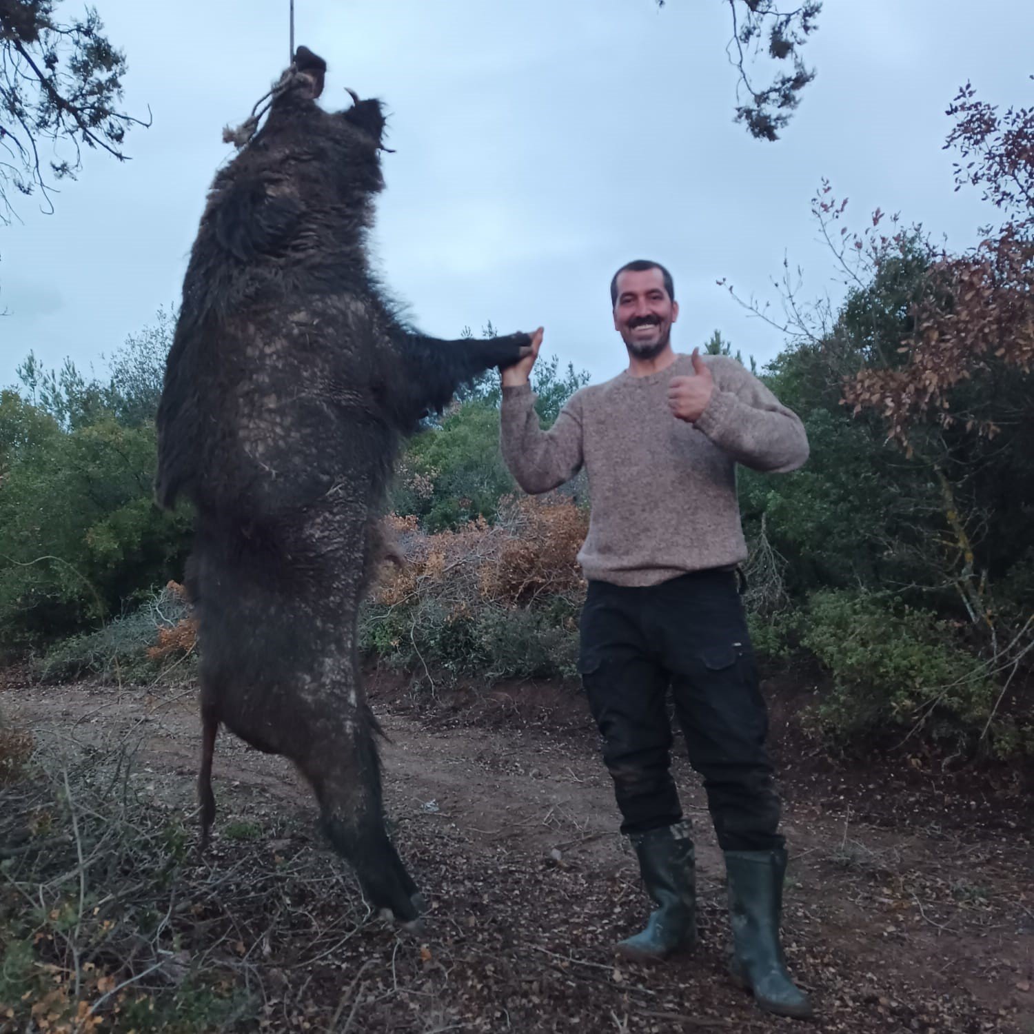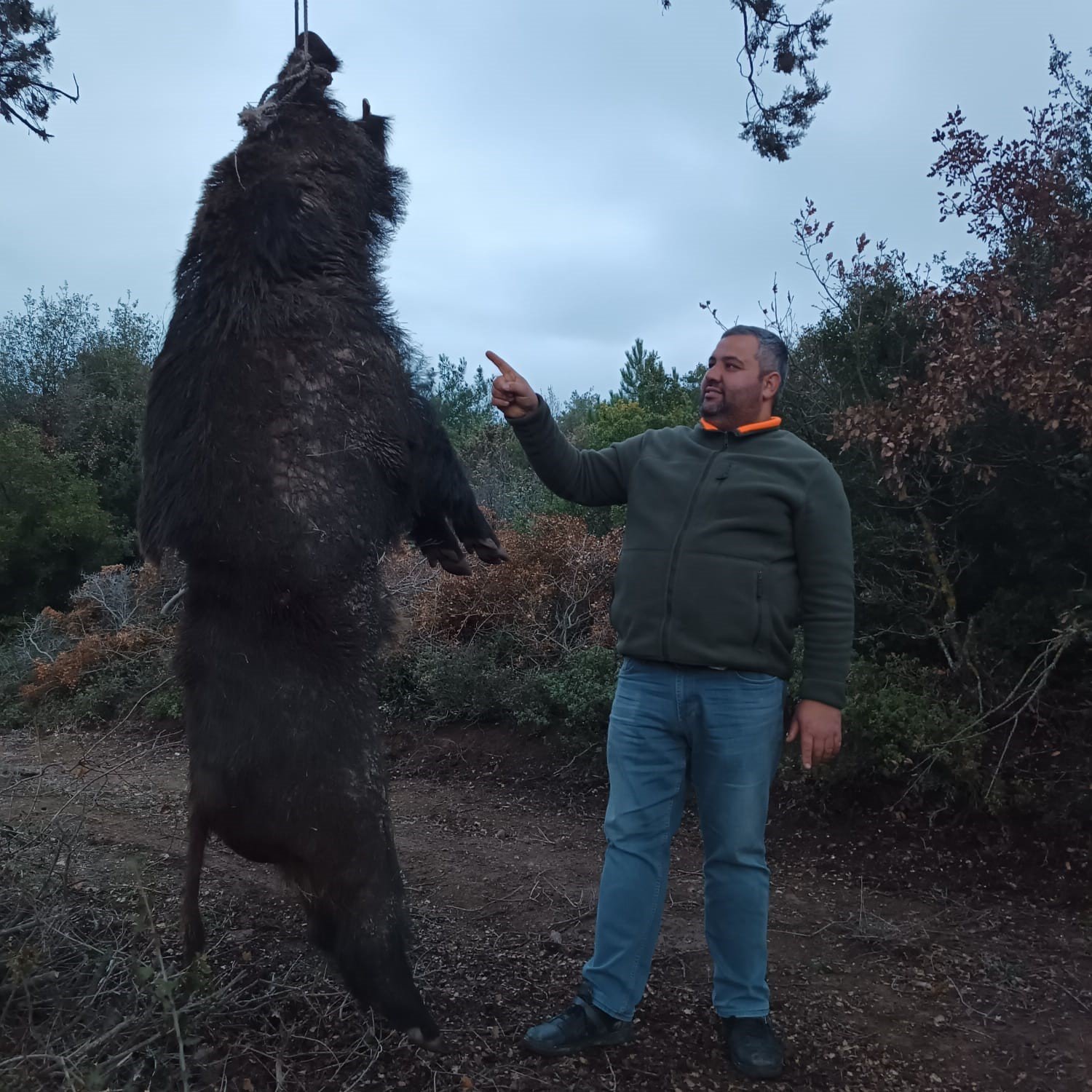 300 kiloluk dev domuzu gördüklerinde kendilerinin de şaşırdıklarını anlatan Basri Kuş, “Yaban domuzu tarlalara aşırı zarar verdiği için gelip bize ihbar ettiler. Bu uzun zamandır olan bir şey, yeni bir şey değil. Oradaki tarlara aşırı zararı görünce bize gelip domuzun vurulmasını istediler. Biz de gittik, hayvanı takip ettik. Köpeklerimizi saldık. Bu kadar aşırı büyük olduğunu biz de bilmiyorduk. İlk kez denk geldim. Biz de gördüğümüz zaman arkadaşlarla birlikte şaşırdık. Rekor diyorum, başka bir şey demiyorum” dedi. – İHA