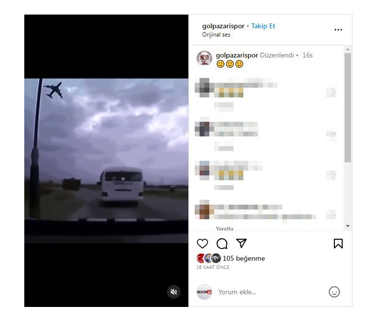 Aynı şekilde uçak motorunun paylaşıldığı videonun sonuna yere çakılan bir uçak montajı yapıldı.