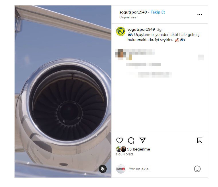 Maç öncesi Söğütspor’un sosyal medya hesabından çalışan bir uçak motoru videosu paylaşımı yapılırken altına, “Uçuşlarımız yeniden aktif hale gelmiş bulunmaktadır.” ifadelerine yer verildi.