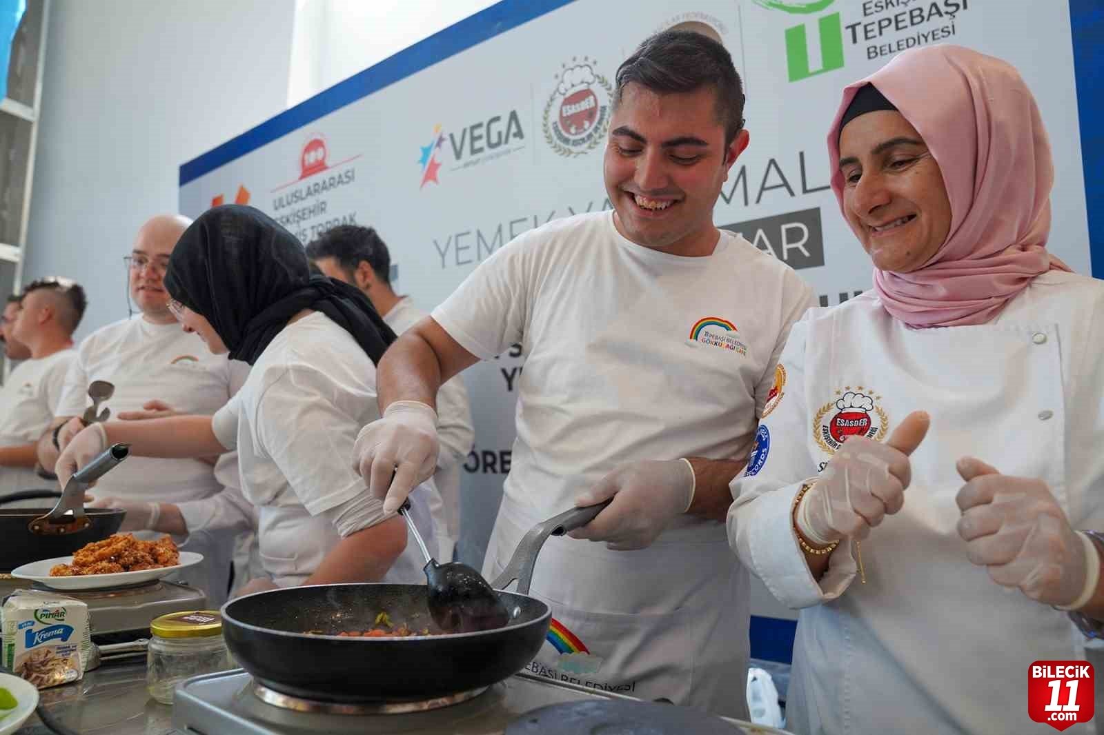 Tepebaşı Belediyesi tarafından düzenlenen yarışmada keyifli görüntüler ortaya çıktı. Türkiye Aşçılar Federasyonu’na bağlı Eskişehir Aşçılar Derneği iş birliğinde gerçekleşen yarışmada, 10 down sendromlu bireyin yanı sıra profesyonel aşçılar etkinliğe katıldı.
