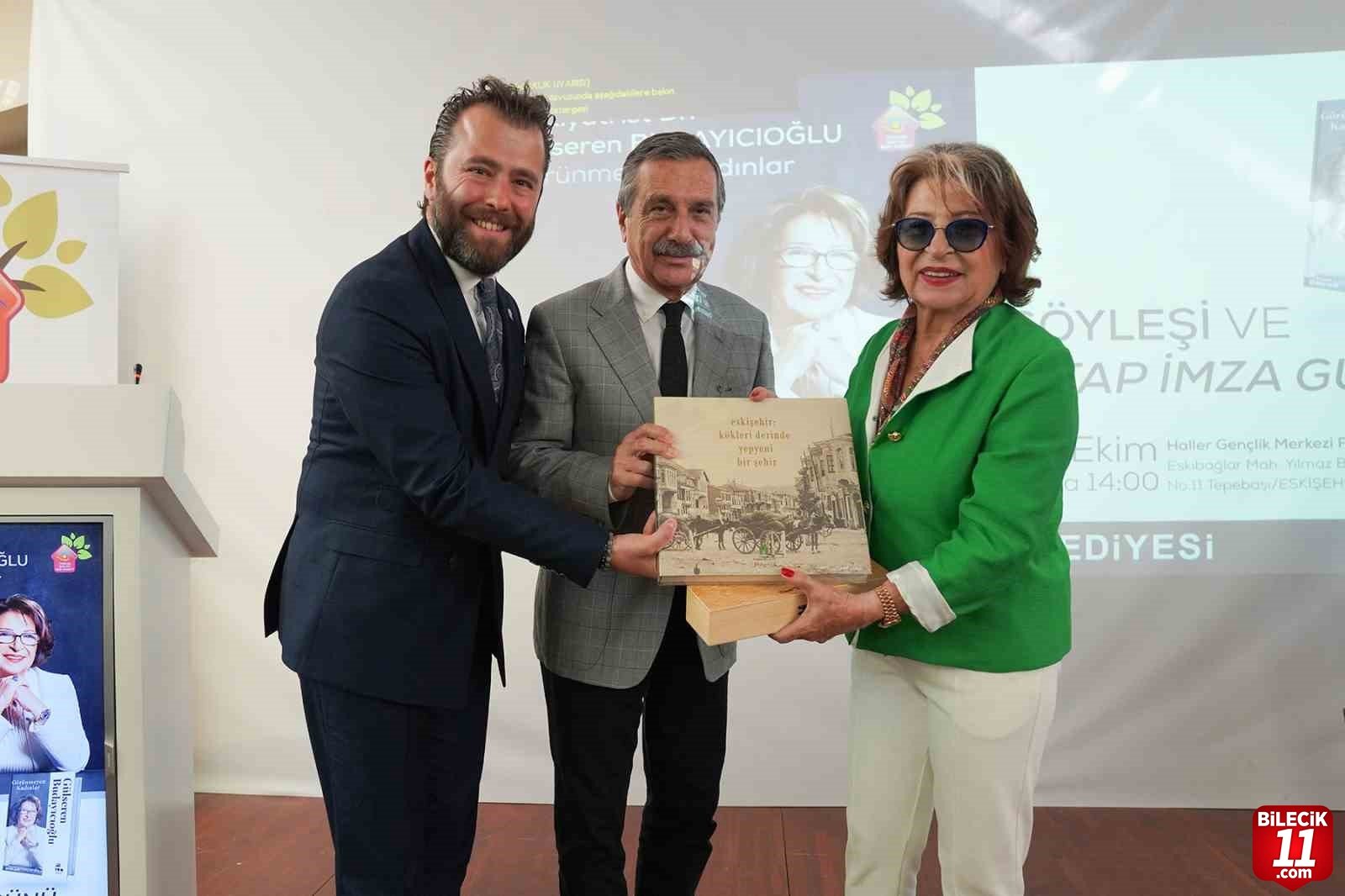 Söyleşinin ardından Başkan Ataç, Budayıcıoğlu’na Eskişehir: Kökleri Derinde Yepyeni Bir Şehir kitabını hediye etti.