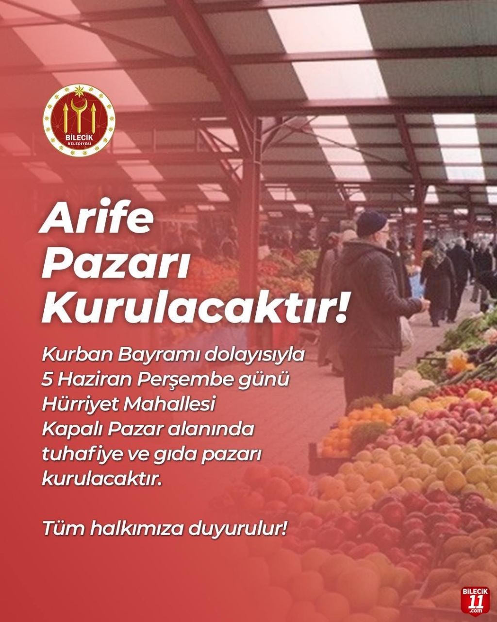 Bilecik’te Kurban Bayramı öncesi Arefe Pazarı kurulacak.