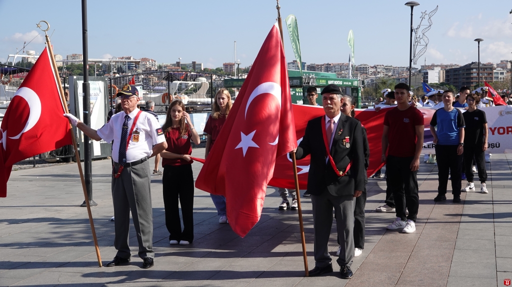 Kütahya’daki tören kapsamında protokol üyeleri, gaziler ve öğrenciler, ellerindeki Türk bayraklarıyla Tugay Bandosu eşliğinde Cumhuriyet Caddesi’nden Zafer Meydanı’na kadar yürüdü.