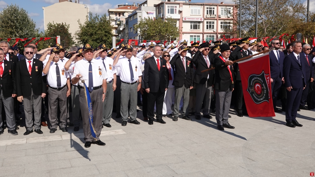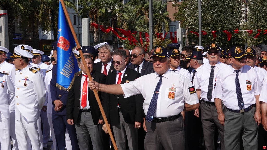 Saygı duruşunda bulunulmasının ardından askeri bando eşliğinde İstiklal Marşı’nın okunduğu törende, Dumlu tarafından günün anlam ve önemini belirten konuşma yapıldı. Törende daha sonra Kıbrıs Barış Harekatı gazisi Mehmet Demir ve Cumhuriyet Anadolu Lisesi öğrencisi Osman Ege Avcı tarafından şiirler okundu.