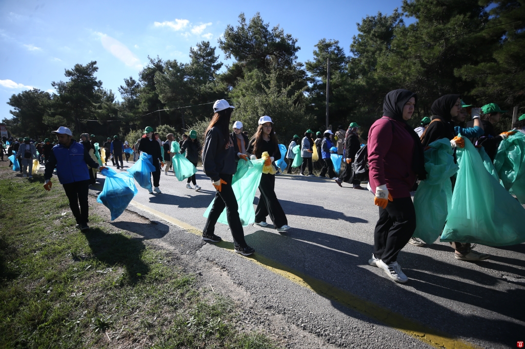 Bursa’da yaklaşık 150 kişiden oluşan gönüllü gençler ve kurum çalışanları bir araya gelerek Cumalıkızık’ta bulunan ormanlık alanlarda çöpleri topladı.