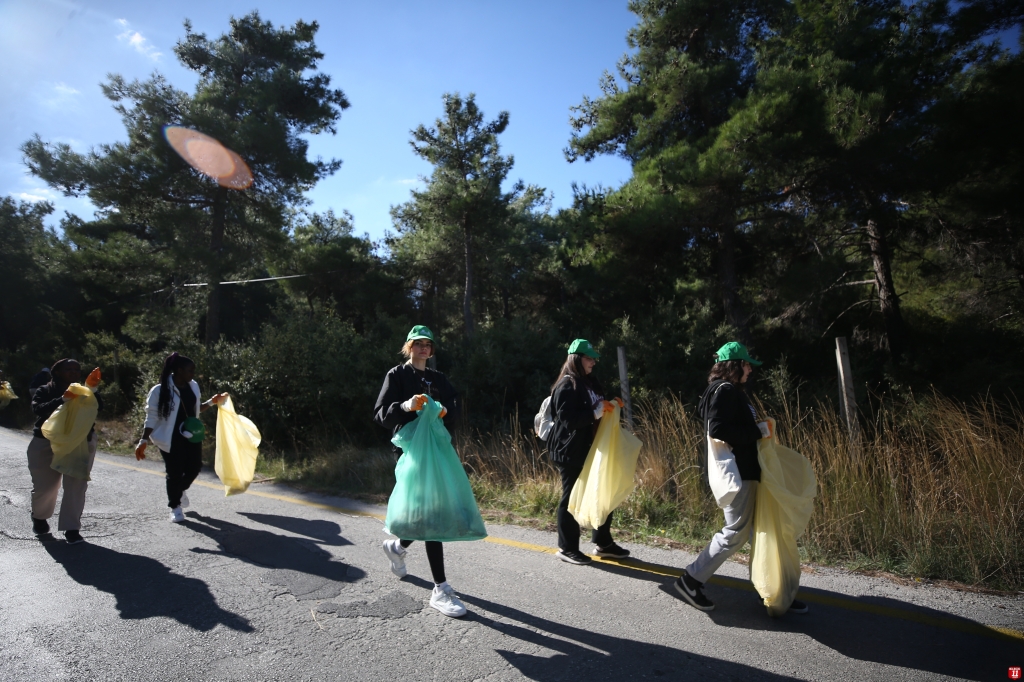 Etkinliğe katılan öğrenci ve gönüllüler, ormanda topladıkları çöpleri belirlenen alana getirerek belediyeye ait çöp kamyonlarına teslim etti.