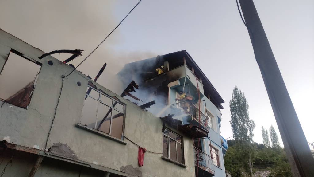 Evden dumanların yükseldiğini gören mahalle sakinlerinin ihbarıyla olay yerine itfaiye, jandarma ve 112 Acil Sağlık ekibi sevk edildi.