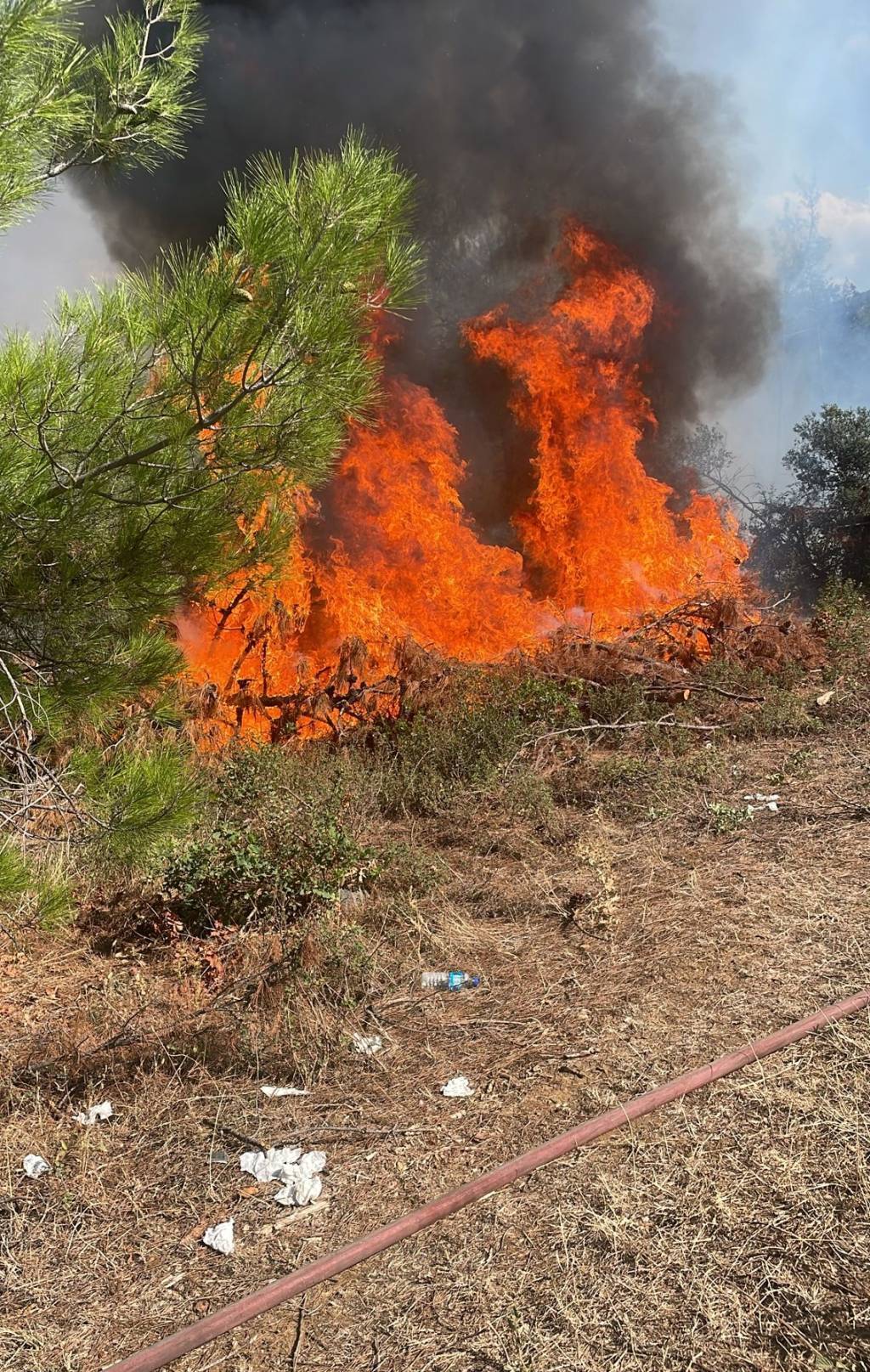 Kayapa Mahallesi'nde, Kayapa Baraj Göleti çevresindeki ormanlık alanda henüz belirlenemeyen nedenle yangın çıktı.