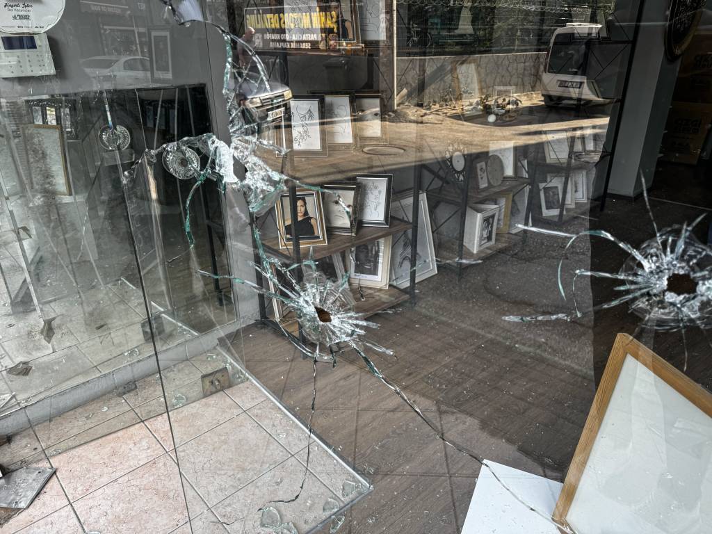 Sabah geldiklerinde camdaki 4 mermi izini gören iş yeri sahibi ve çalışanlar, durumu polise bildirdi.