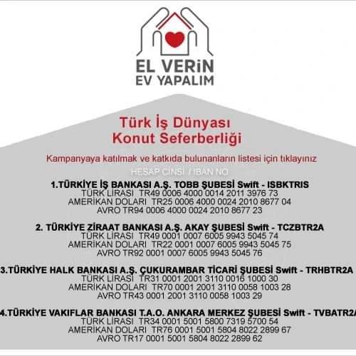 Diğer yandan Bilecik TSO konut seferberliği kampanyasına ilişkin bankalara ait IBAN numaralarını paylaştı.