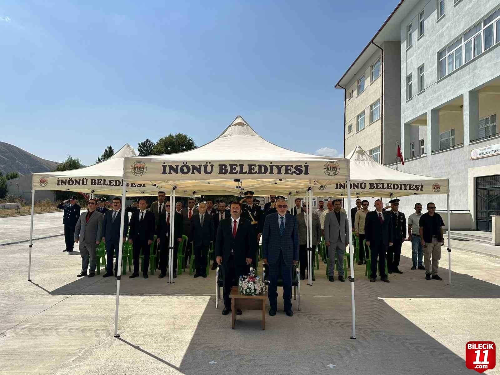 30 Ağustos Zafer Bayramı’nın 101’inci yılı münasebetiyle yapılan kutlamalar, kaymakamlık makamında tebriklerin kabulü ile başladı. İnönü Mesleki ve Teknik Anadolu Lisesi tören alanında İnönü Kaymakamı Tolga Ustaoğlu, İnönü Belediye Başkanı Kadir Bozkurt ve kurum amirlerinin katılımlarıyla birlikte Atatürk Anıtı’na çelenk sunma töreni gerçekleştirildi. Saygı duruşu ve İstiklal Marşı’nın okunmasıyla günün anlam ve önemine binaen konuşmalar yapıldı. Resmi törenin ardından İnönü Kaymakamı Tolga Ustaoğlu, İnönü Belediye Başkan Yardımcısı Serhat Hamamcı ve kurum amirleri ilçe şehitlerinden Şehit Polis Memuru İbrahim Gülten ve Şehit Jandarma Asteğmen Ali İhsan Aydın’ın kabirlerini ziyaret ederek dua etti. – İHA