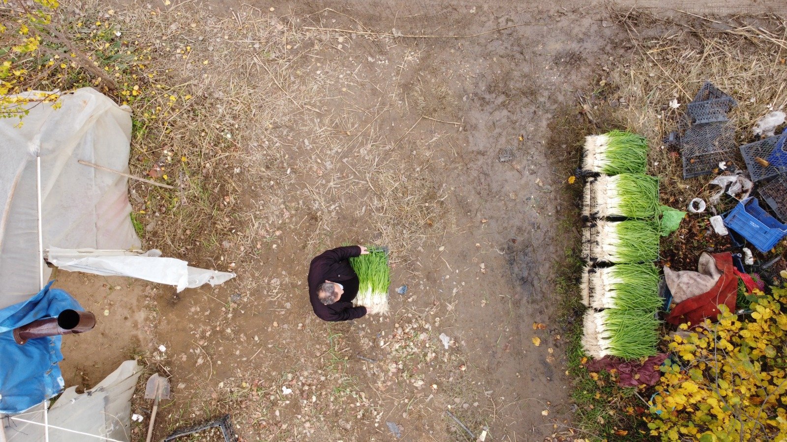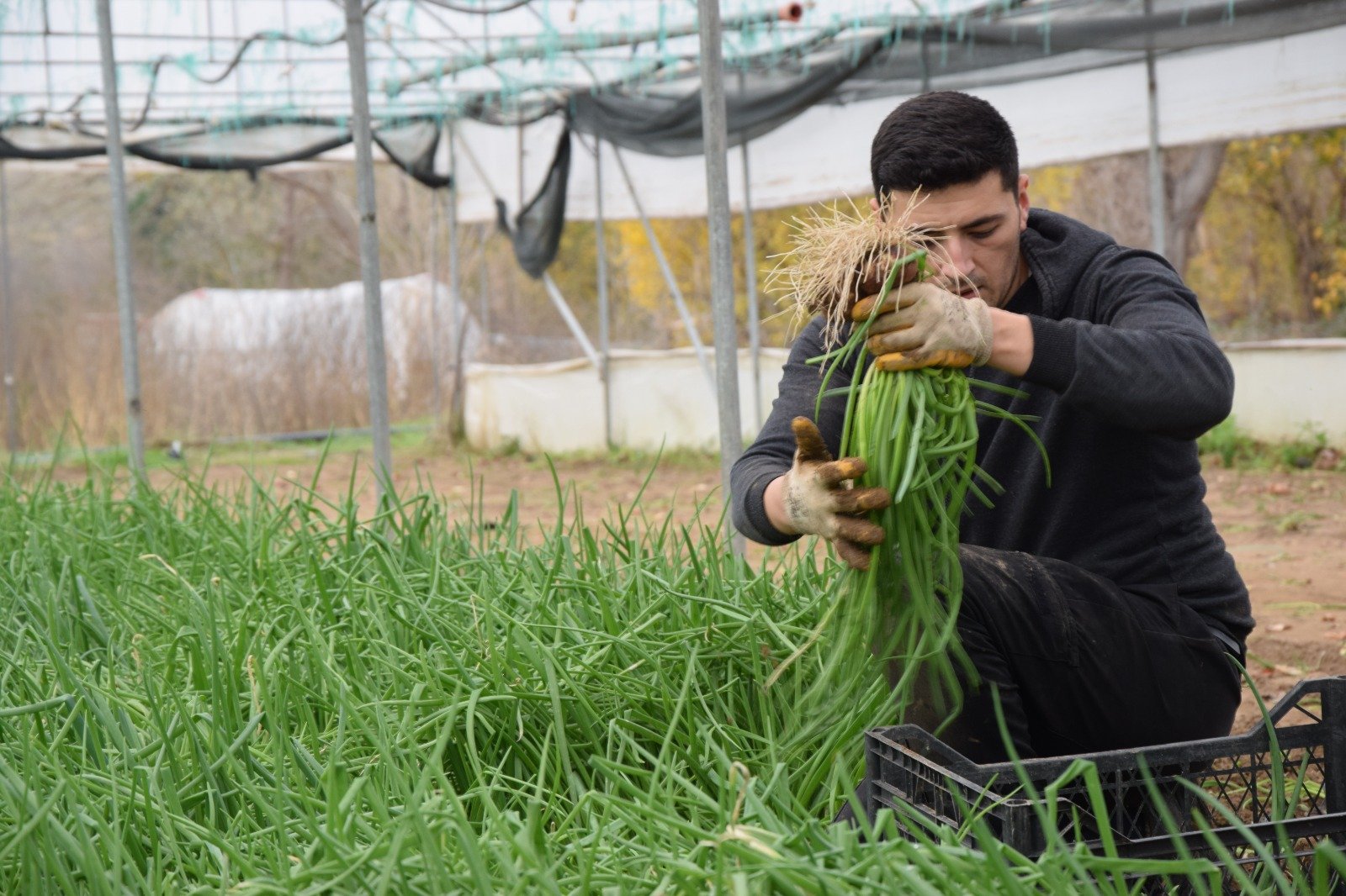 Kış sezonunda ağırlıklı yeşilsoğan ve roka ürettiklerini anlatan Güçlüdağ, “Bursa’nın Yenişehir ilçesinden soğanın kurusunu getiriyoruz. Seralara tek tek dikiyoruz. Hava şartlarına göre 1,5-2 ay içerisinde yeşilsoğan haline geliyor. 6 dönüm bir alanda üretim yapıyorum. Hiçbir şekilde suni gübre yok. İstanbul, Ankara, Eskişehir ve Sakarya olmak üzere Marmara Bölgesi ile Türkiye’nin her bölgesine gidiyor. Şuan işçi bulmakta zorlanıyoruz. Yeşilsoğanın dikim, söküm, toplama, temizleme, yıkama ve paketleme işçiliği zor. Çalışacak genç işçi bulamıyoruz, söküm işini oğlum işyerinden izin alarak yapıyor. Çalışan kadınlarımızın yaş ortalaması 60 ve üzeri. Biz burada hem istihdama hem ilçe hem de ülke ekonomisine katkıda bulunuyoruz. Hava sıcaklığının mevsim normallerinin üzerinde seyretmesi nedeniyle yeşil soğana talep azaldı. Hava şartlarından etkileniyor yeşil soğanımız. Kışın kar, buz olursa yeşil soğan para ediyor, hava sıcak giderse ucuzluyor. Her şeye rağmen umutluyuz, bu bizim ekmek kapımız.” dedi.