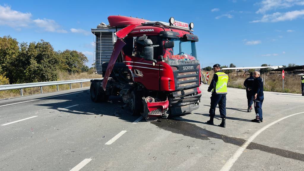 Çanakkale'nin Çan ilçesinde beton mikseri ile tırın çarpışması sonucu 1 sürücü yaralandı.