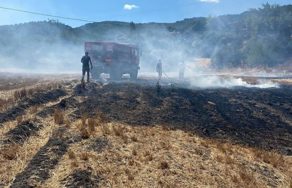 Köylülerin de destek verdiği söndürme çalışmaları kapsamında yangın ormana sıçramadan kontrol altına alındı.