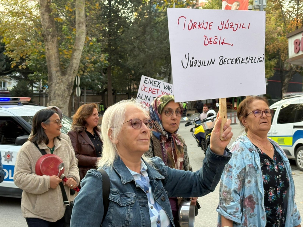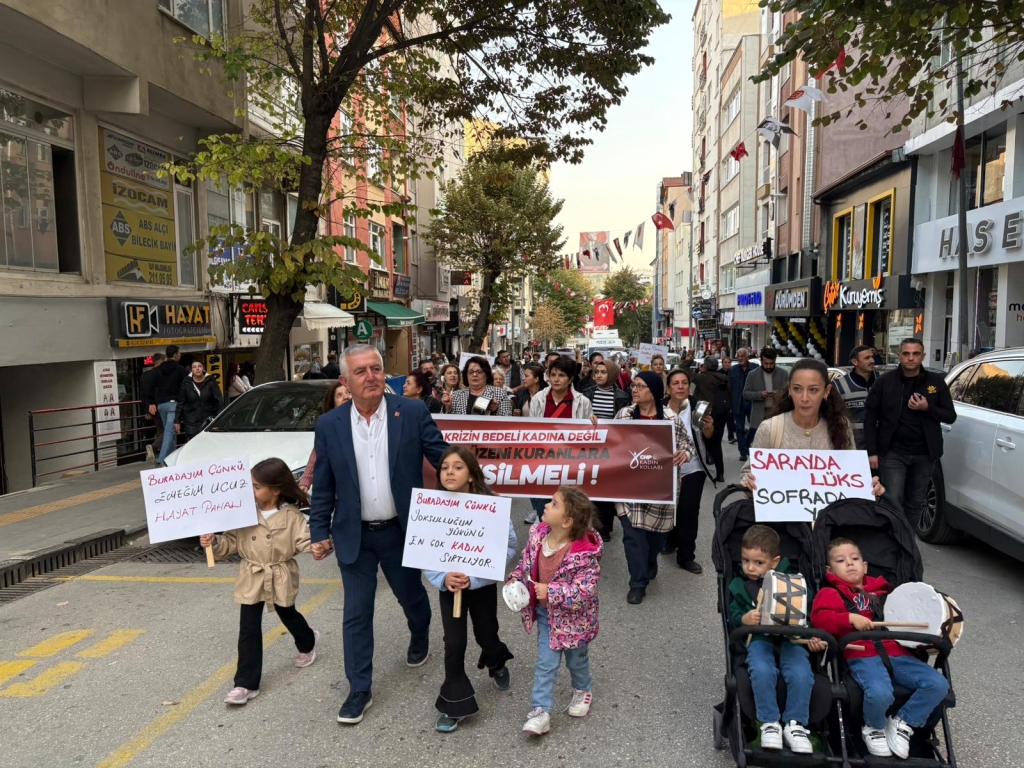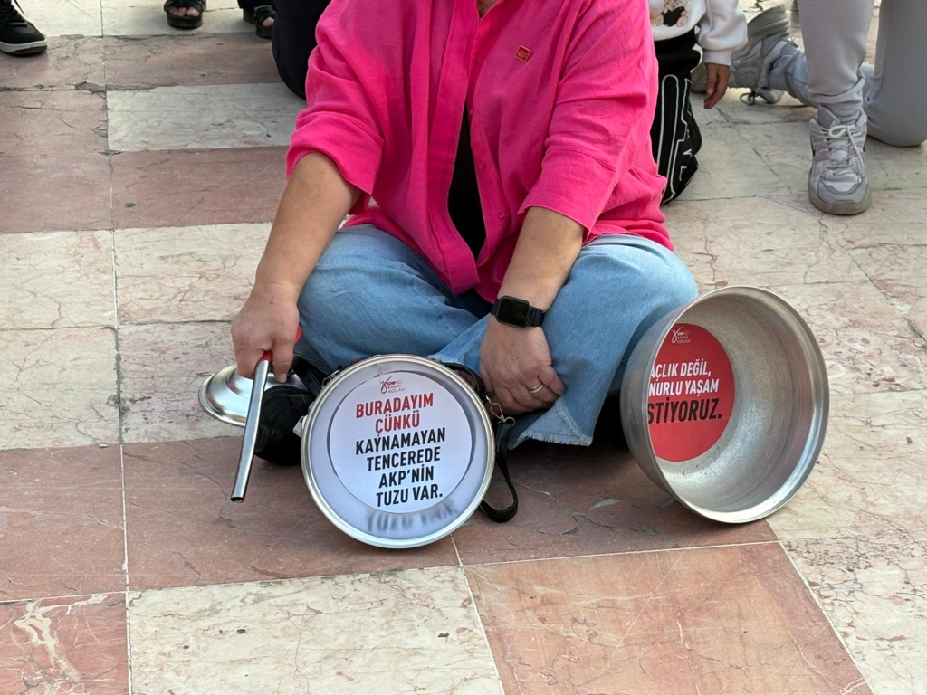 CHP İl Başkanlığı binası önünde toplanan kadınlar ellerindeki boş tencerelere vurarak Tevfikbey Caddesi üzerinden Cumhuriyet Meydanı’na kadar yürüyüş gerçekleştirdi.