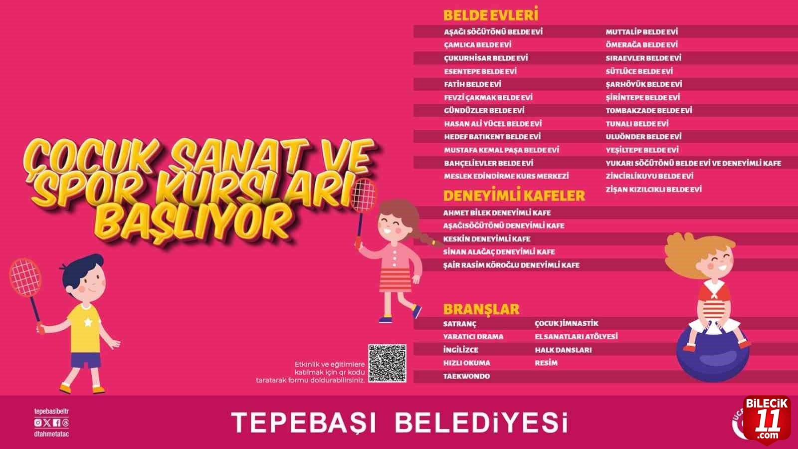 Tepebaşı Belediyesi, çocukların gelişimine katkı sunan kurs programlarını kentin birçok noktasında gerçekleştirmeye devam ediyor. Bu çerçevede başlayacak olan 9 farklı branştaki kurs, 30 ayrı Belde Evi ve Deneyimli Kafe’de Eskişehirliler ile buluşacak. Kurs programları için kayıt işlemleri başladı. Açılacak kurslar arasında satranç, drama, İngilizce, hızlı okuma, tekvando, çocuk jimnastik, halk dansları, el sanatları atölyesi ve resim yer alıyor.